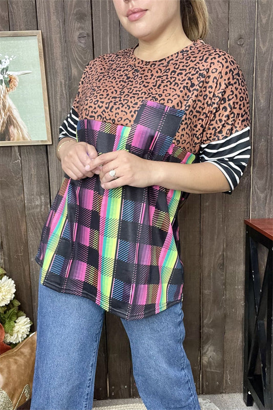 YMY9948 Plaid/leopard/white&black striped Multi color printed short sleeve women tops