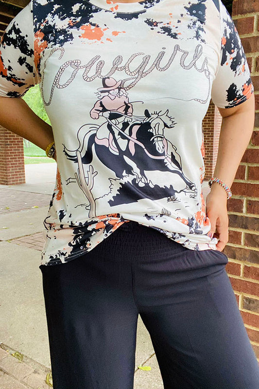 SaleDLH14163 Cow horse riding multi color printed short sleeves women tops