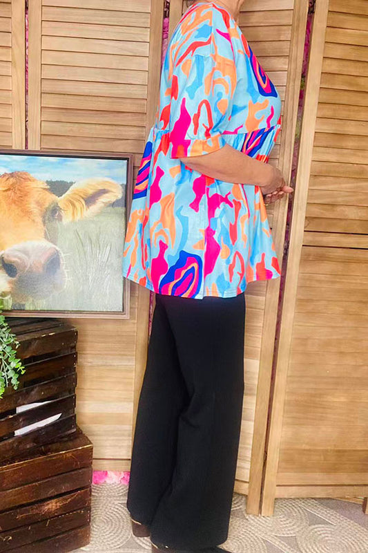Women's blouse suppliers Multi color prints baby doll & short sleeve top BQ15955