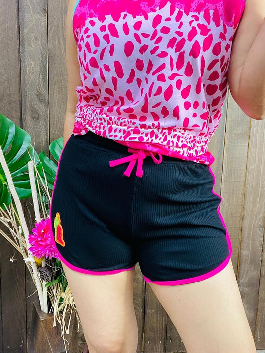 SaleBlack&fuchsia line/bottom with string women shorts XCH14710