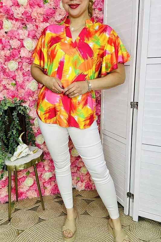 SaleFloral multi color printed short sleeve & v-neckline women blouse XCH15792