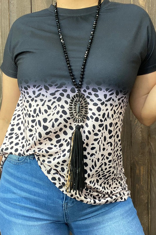 SaleBlack&leopard printed short sleeves women tops XCH14957