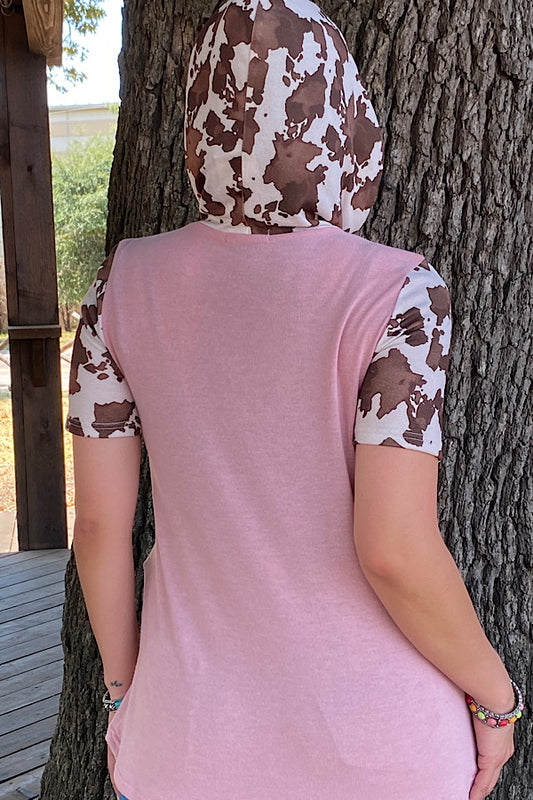 GJQ10437-2 Baby Pink/Cow printed hoodie top