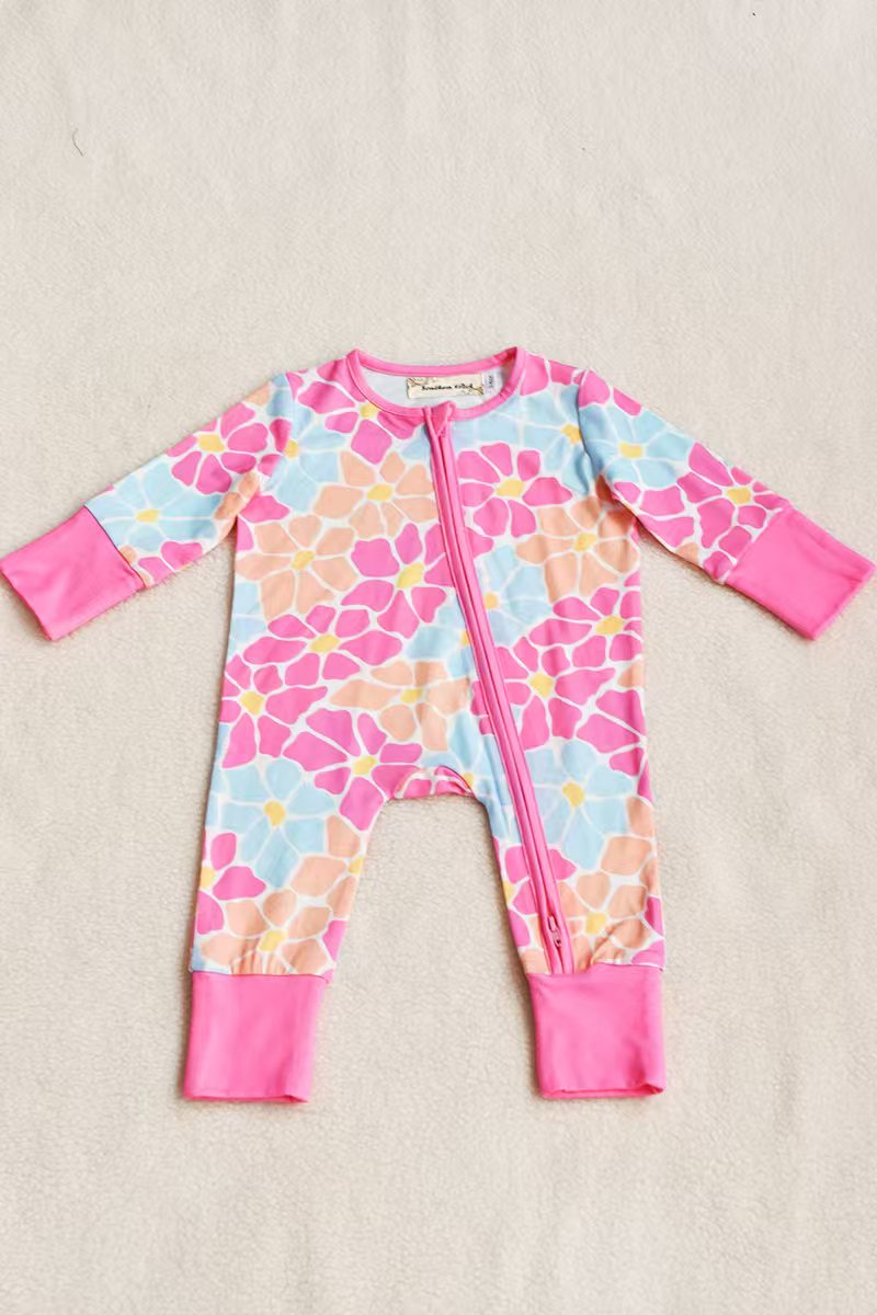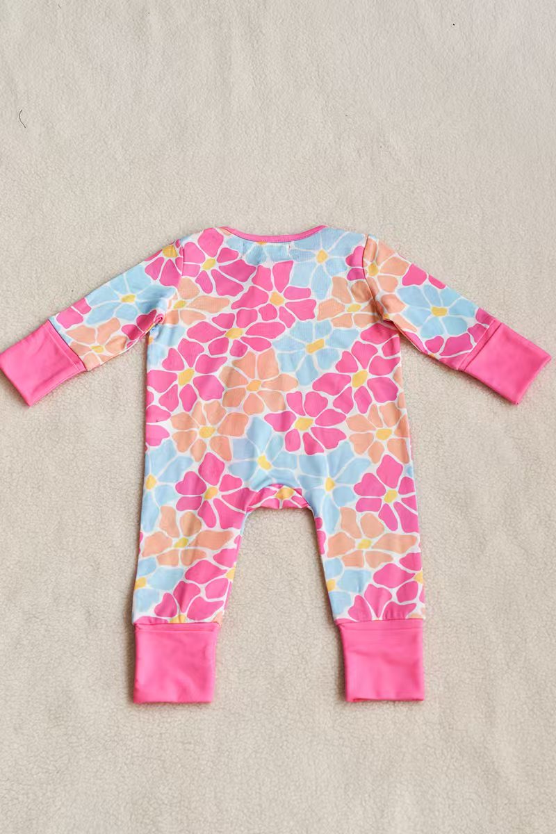 Baby clothes wholesale Floral printed long sleeve baby gilrs romper w/zippers X05019
