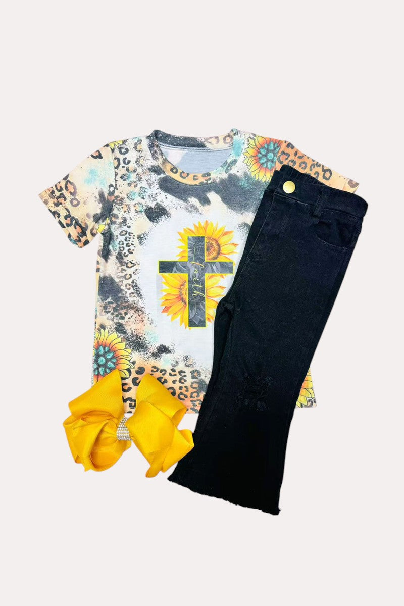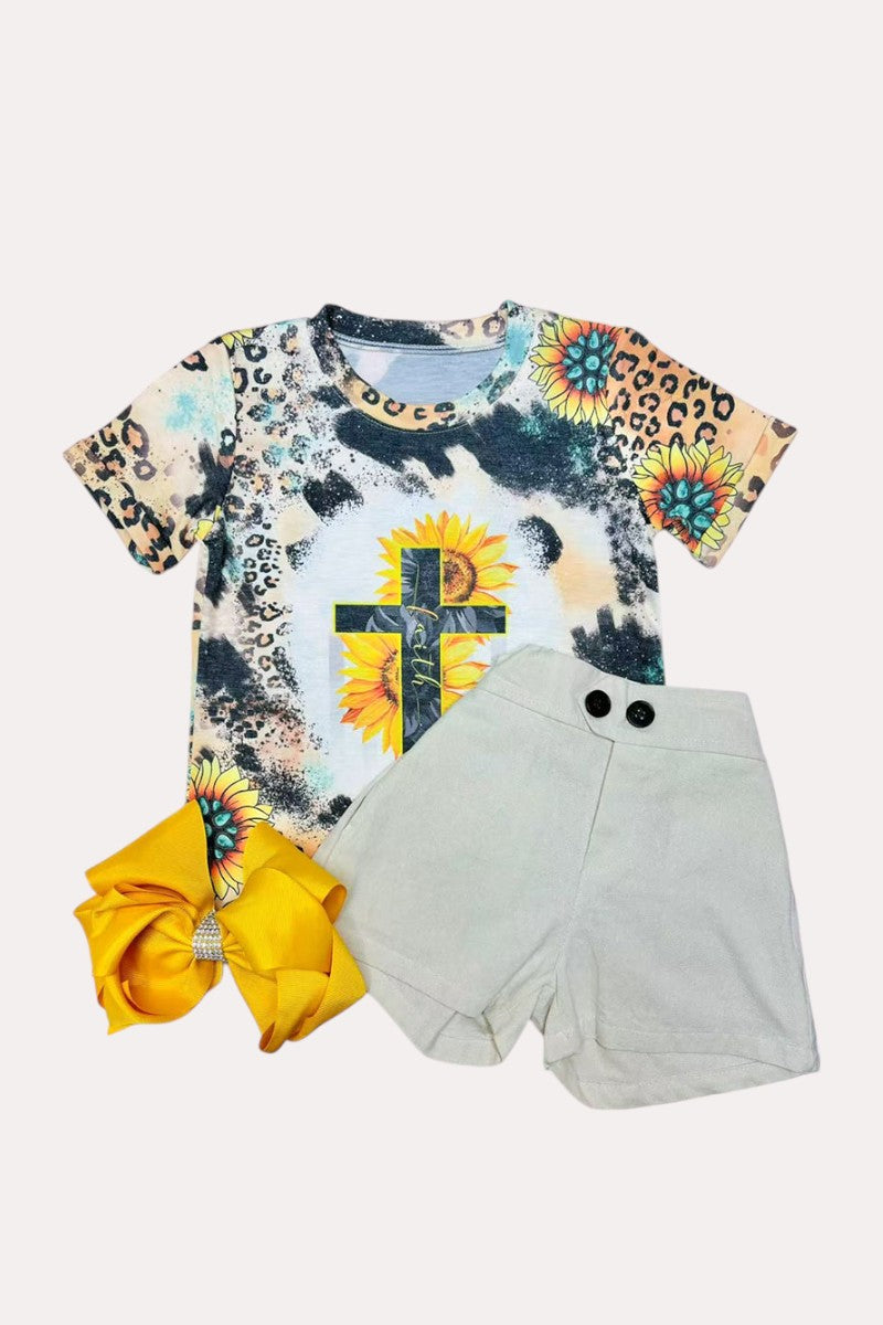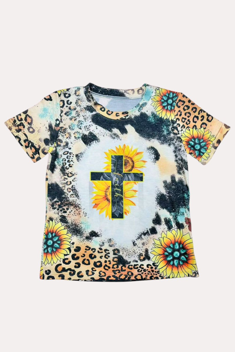 Top featuresFAITH Animal & sunflower printed with short sleeves.