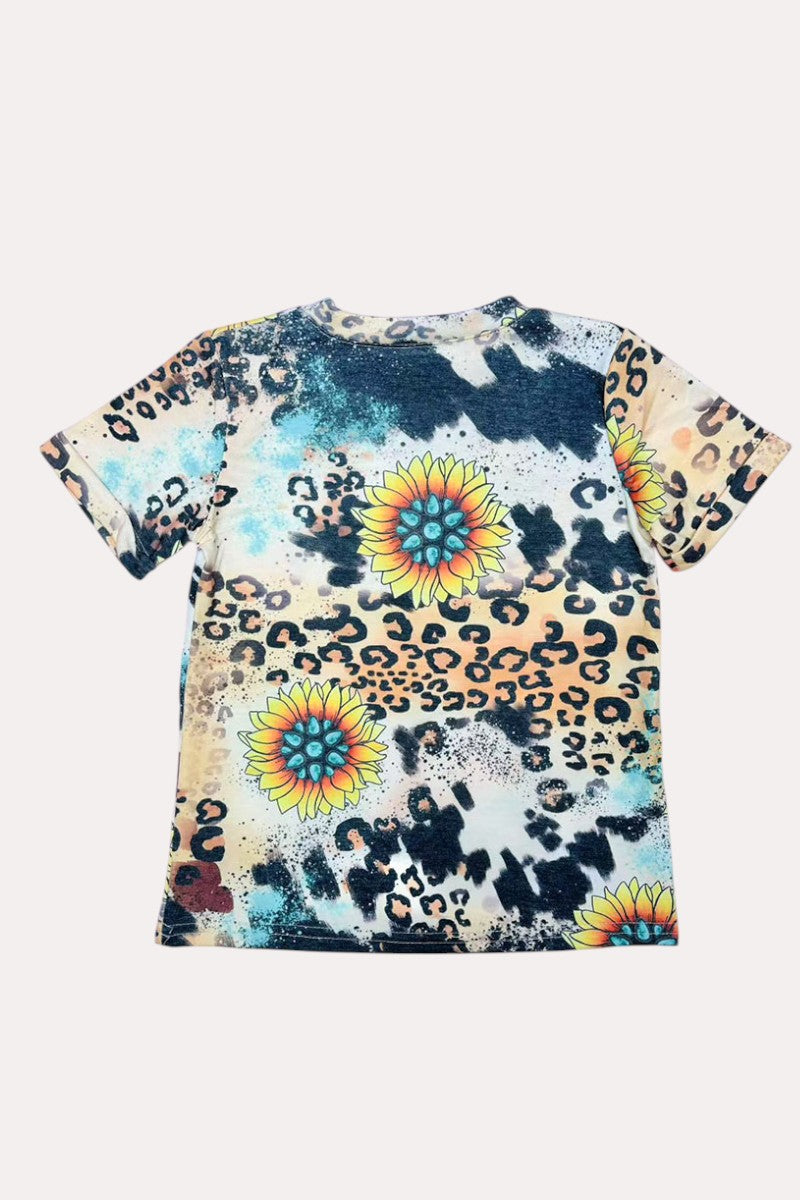 Children's clothing wholesale FAITH Animal & sunflower printed short sleeve top D1121-6