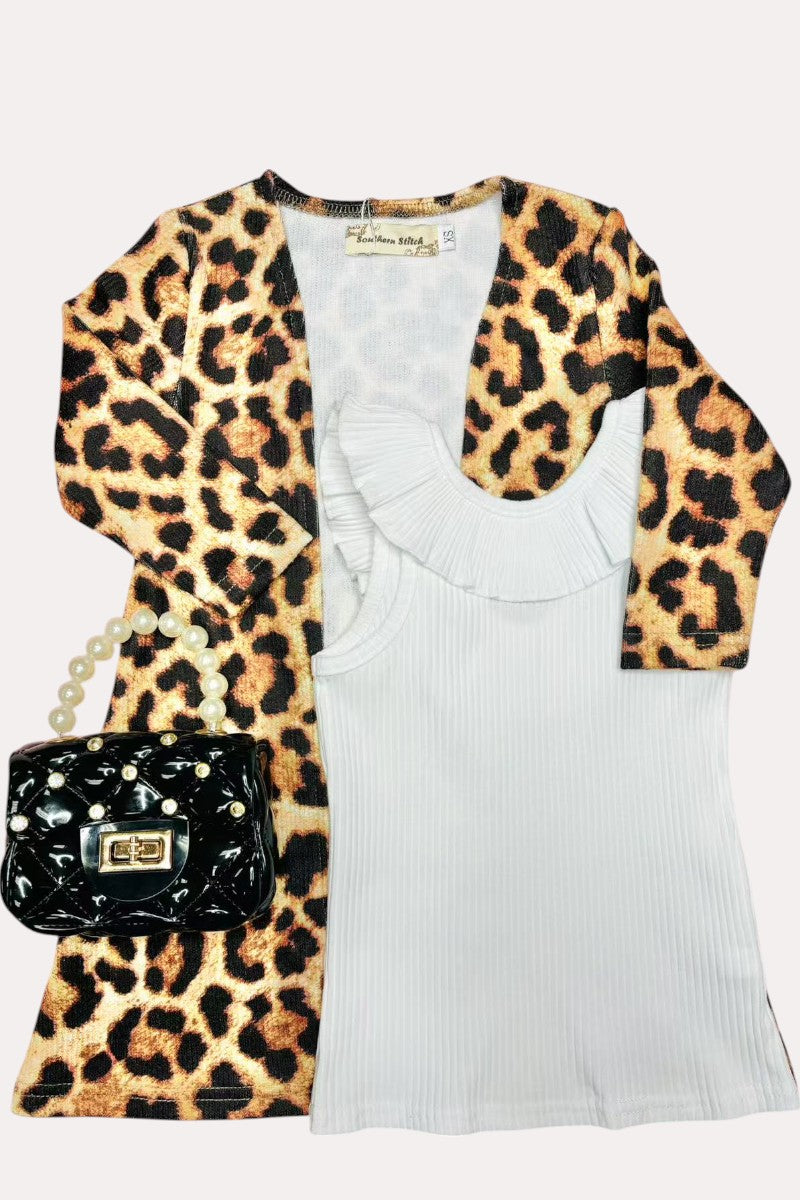 children's clothing wholesale leopard printed long style girls open cardigan X02001