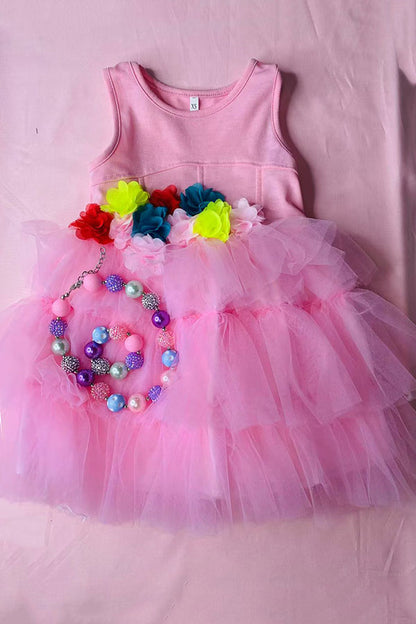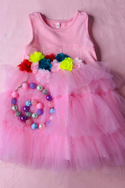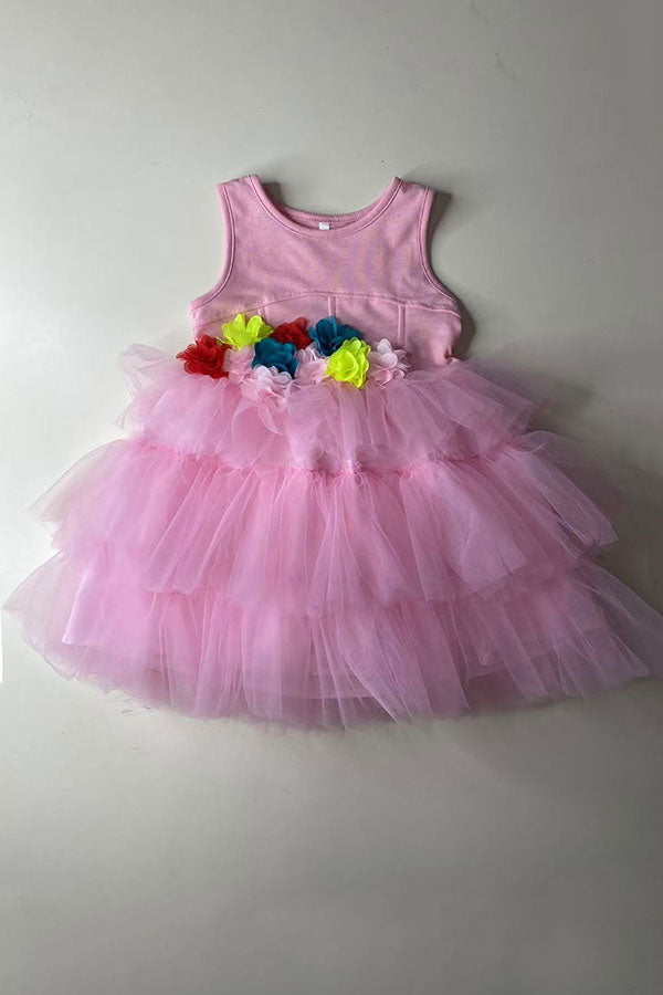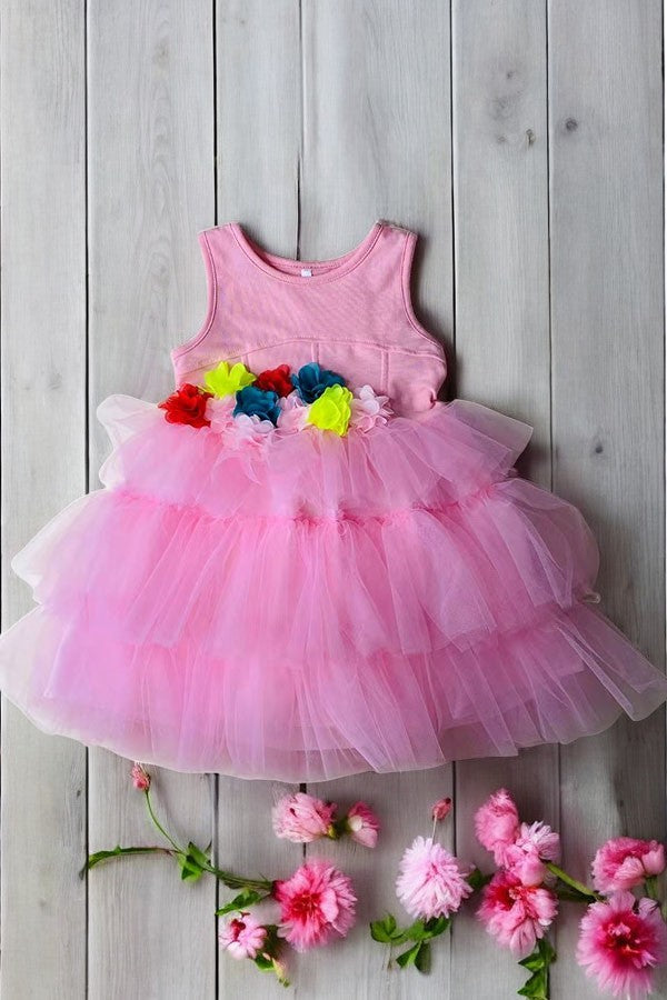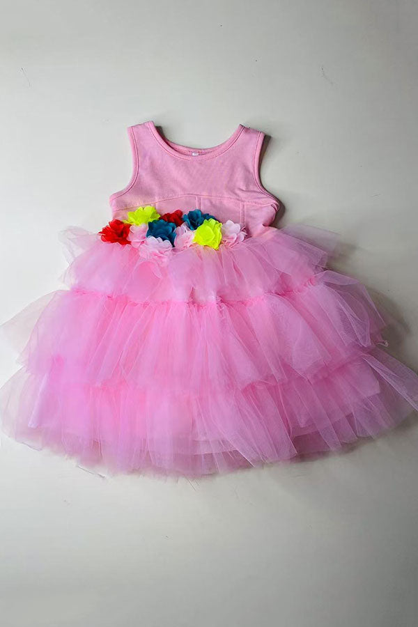 Dress features with pink cotton top & fluffy mesh & pink lining.