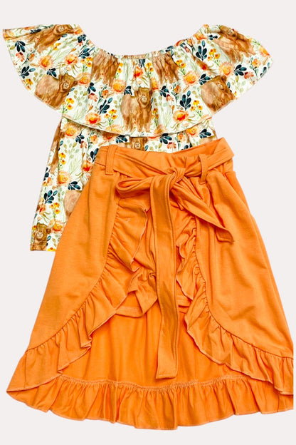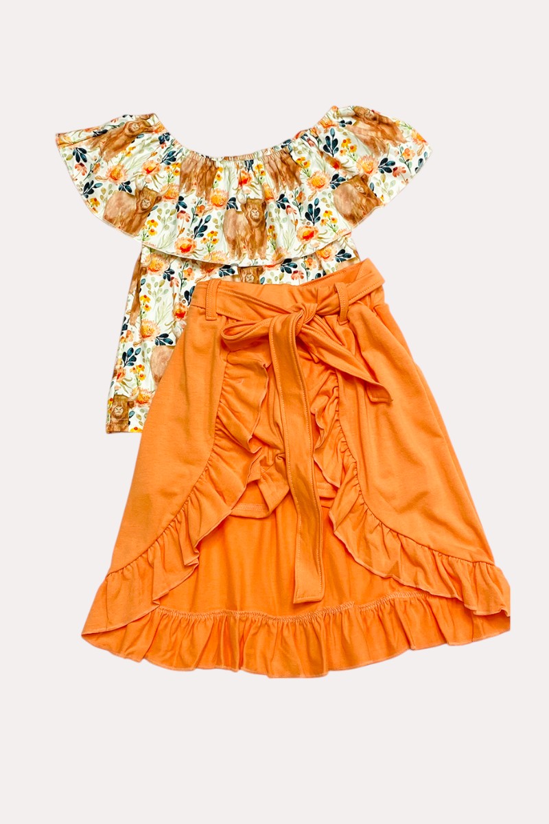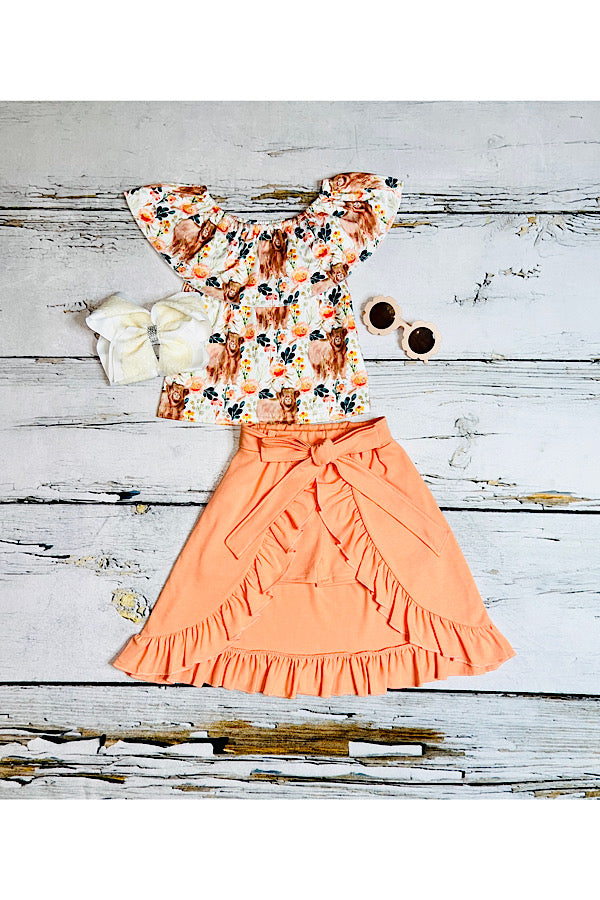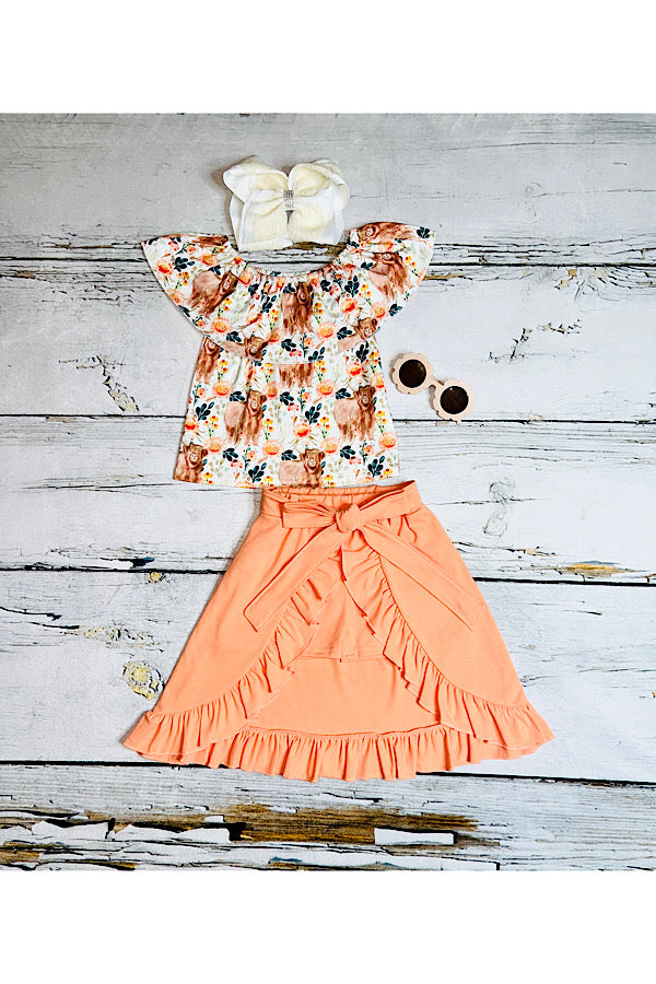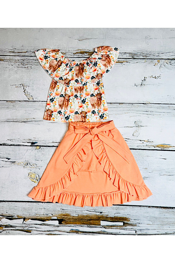 - The top features cute cow and floral print on the soft milk silk fabric with ruffle.