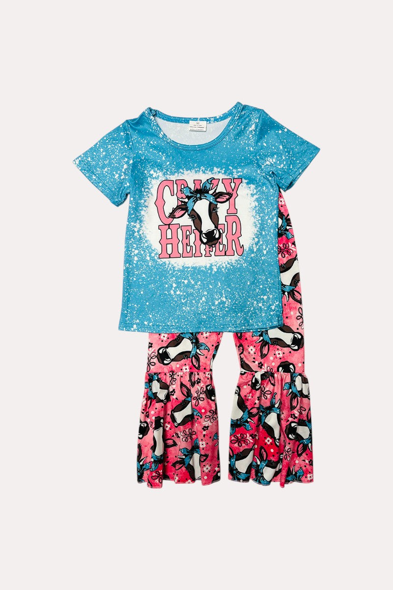 - Top features "CRAZY HEIFER" wording w/a cow face logo on a bleached blue background.