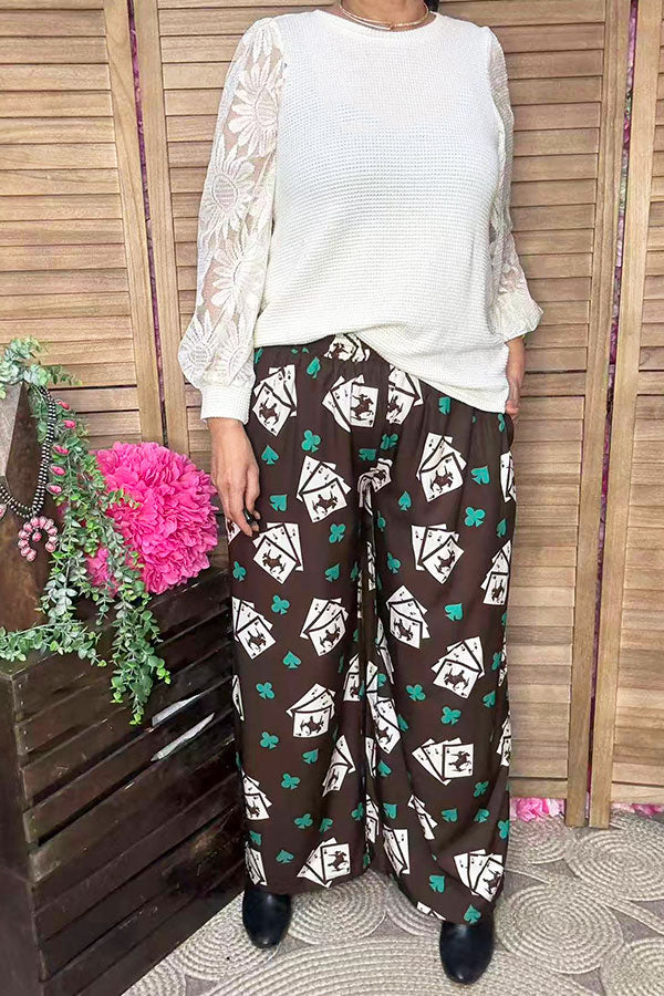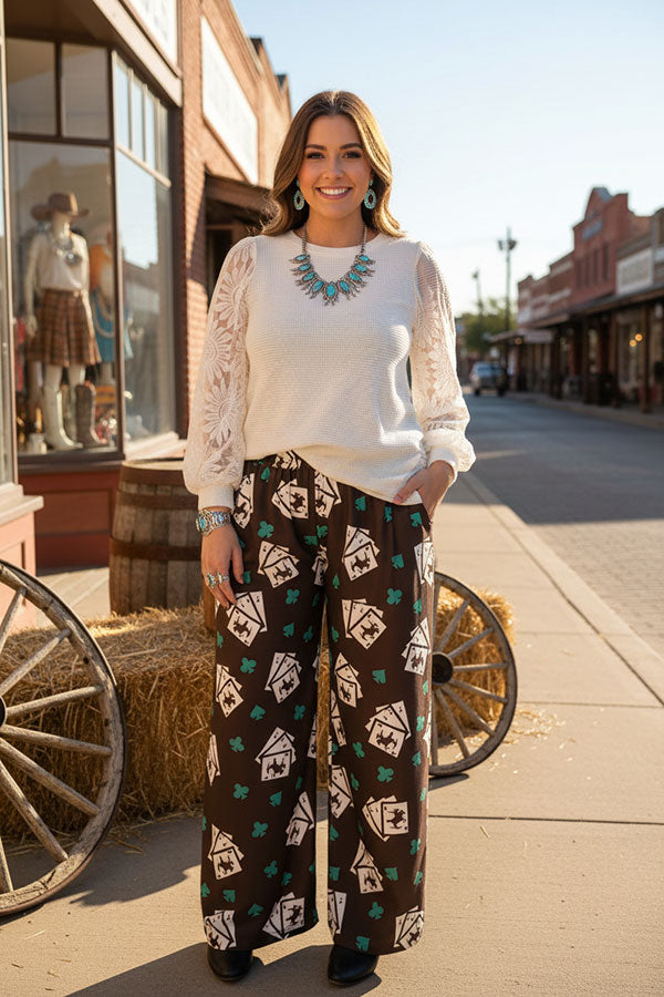Cream knit fabric lace long sleeve women blouse XCH16402