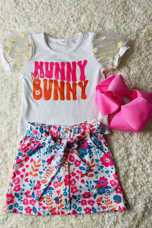 DLH2868 "HUNNY BUNNY" cotton & lace top floral skirt 3pc girls sets