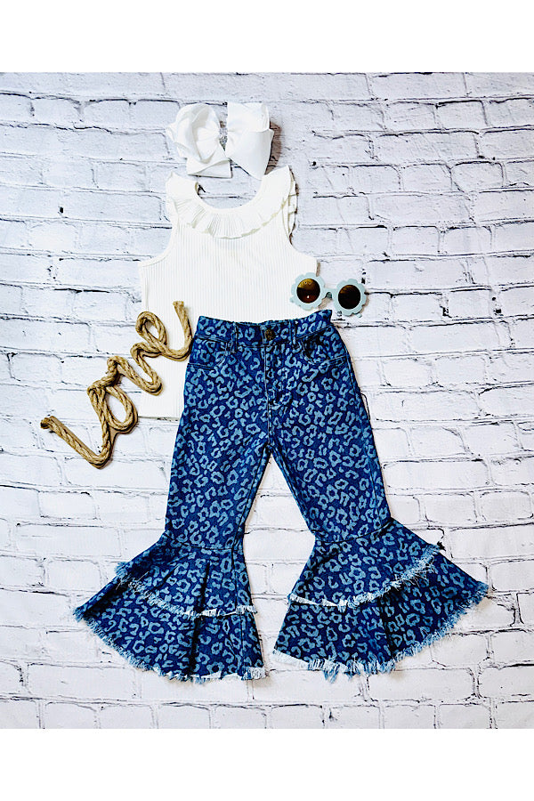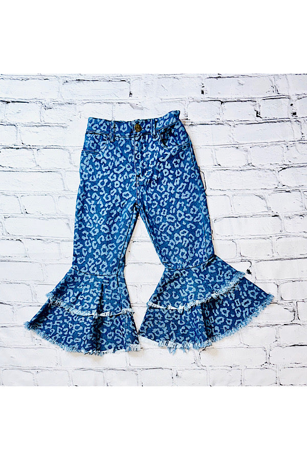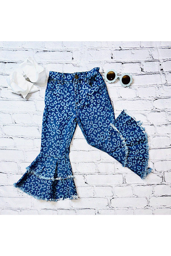 • Bell bottoms feature dark blue cheetah print w/double flare.