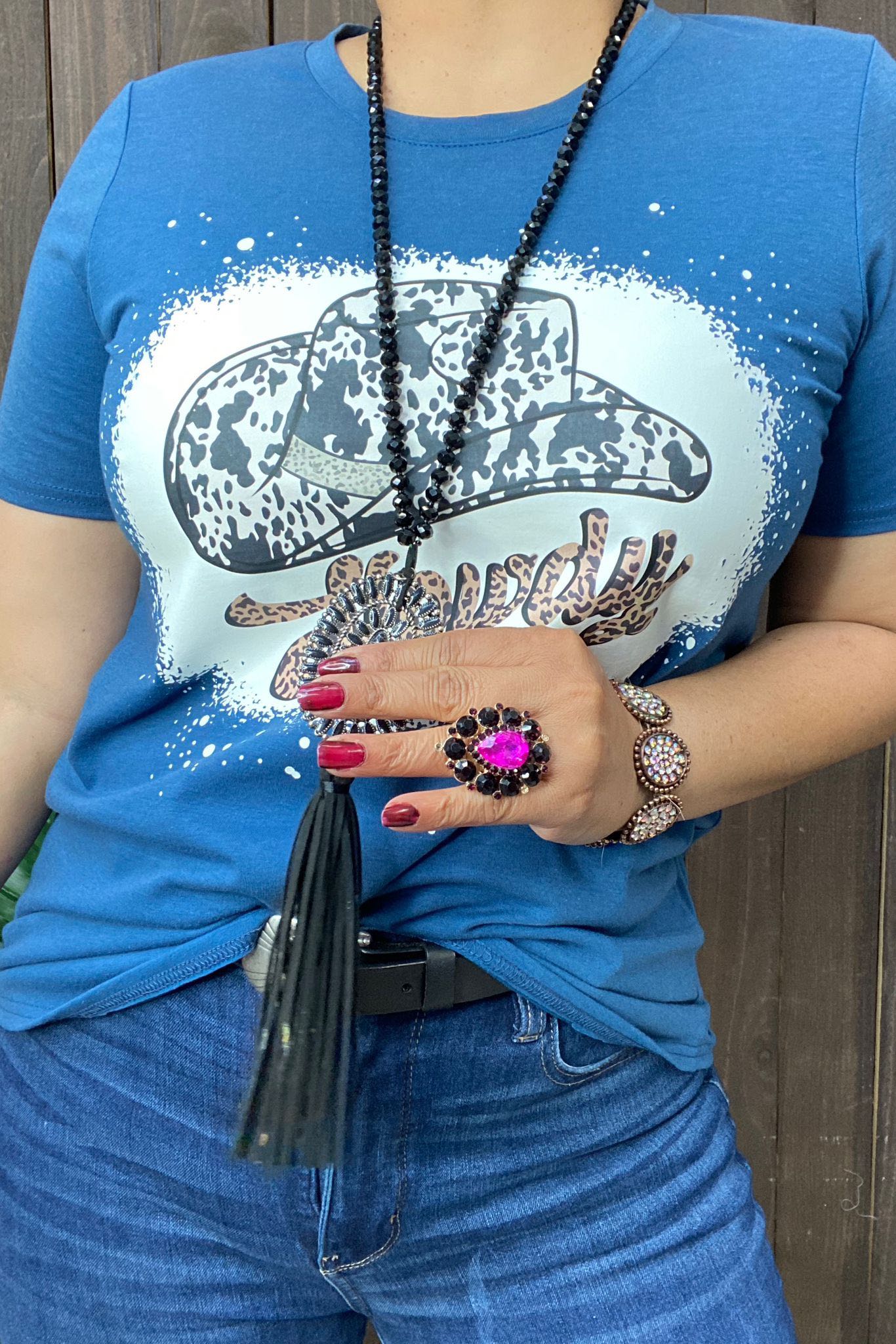 DLH10906 HOWDY Cowgirl hat printed t-shirt