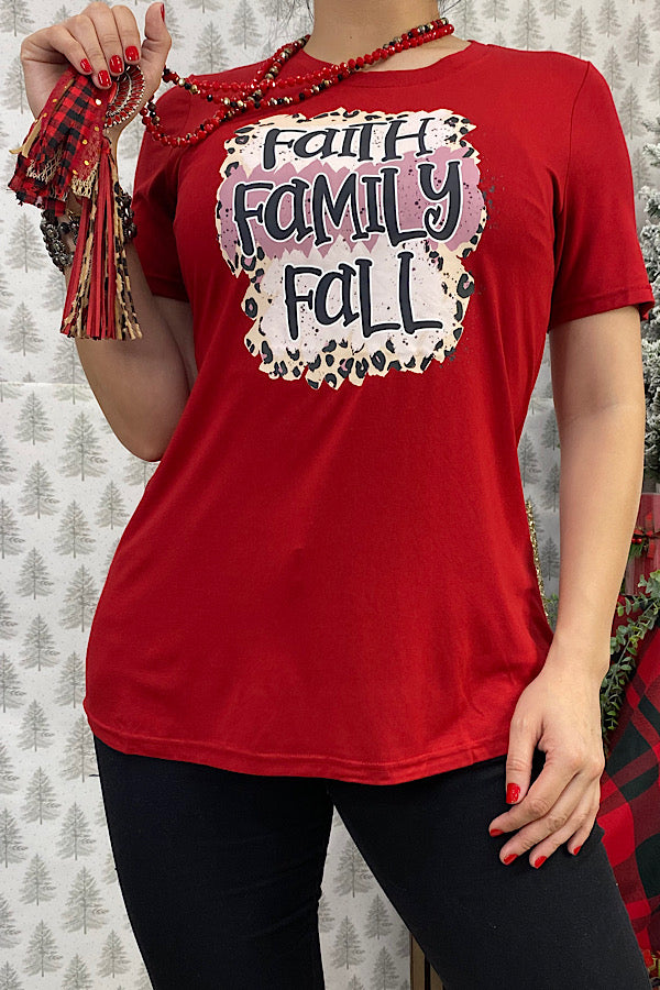 DLH11657 FAITH,FAMILY,FALL burgundy short sleeve top
