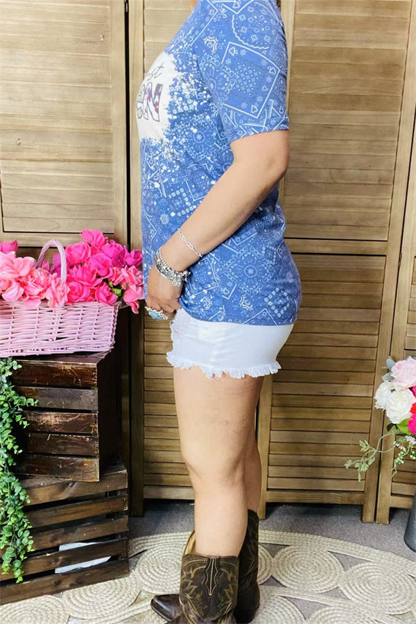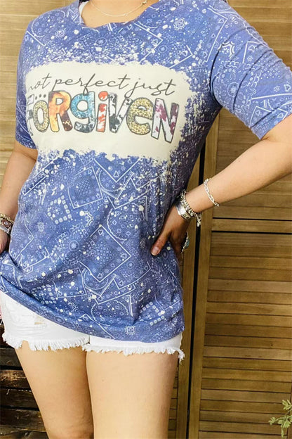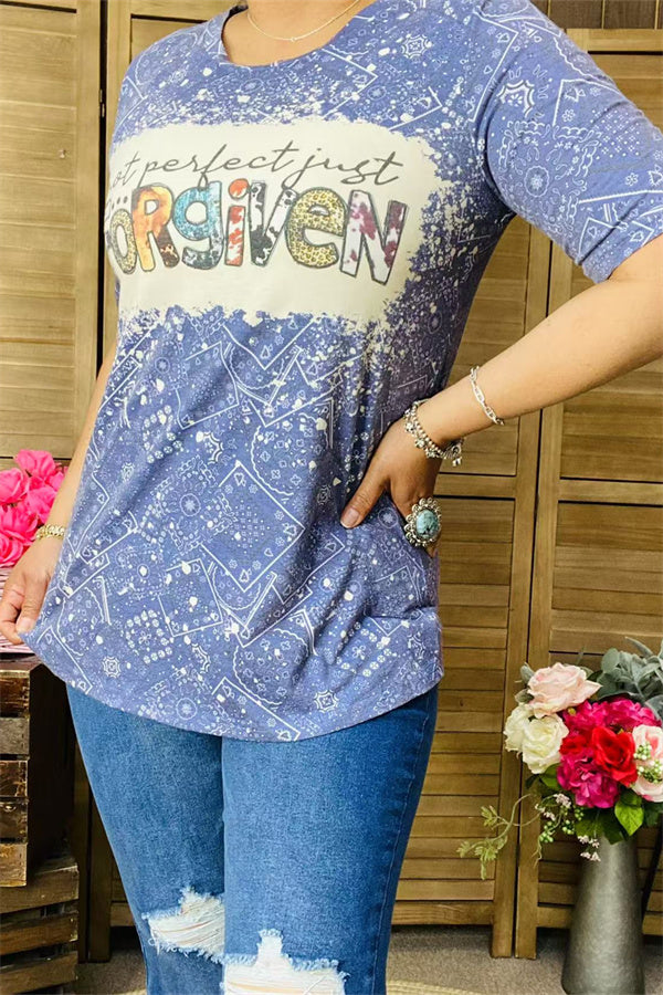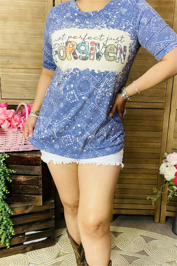 DLH12579 NOT PERFECT JUST FORGIVEN multi color printed short sleeve women tops