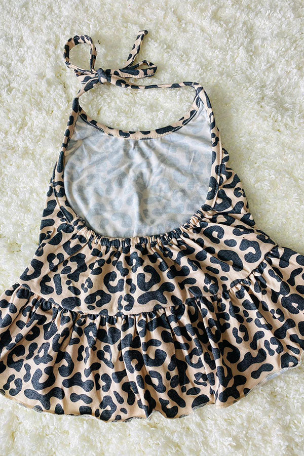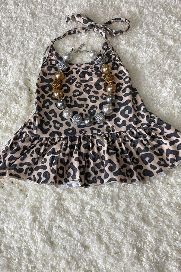 Top features in leopard prints with tie style and ruffles.