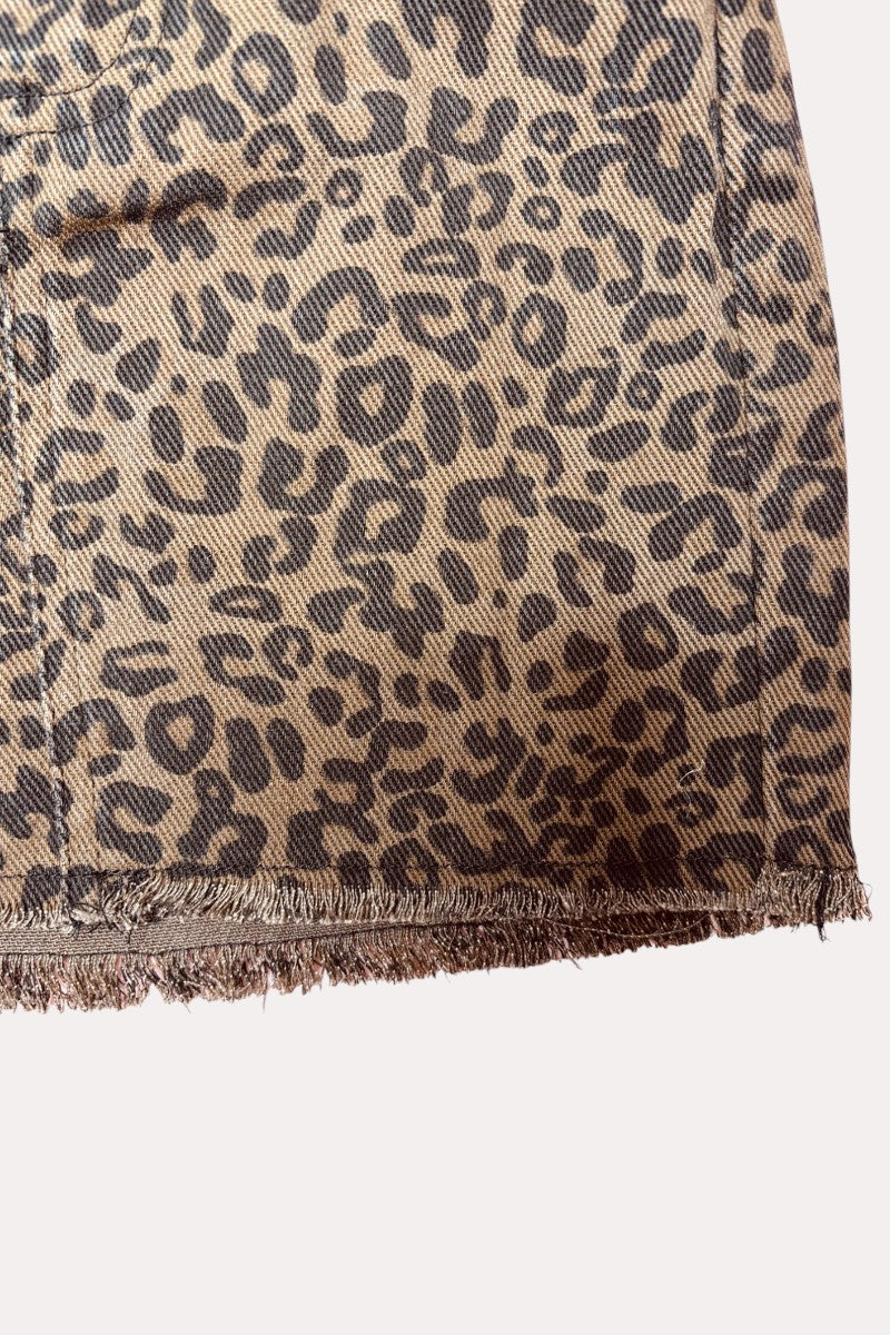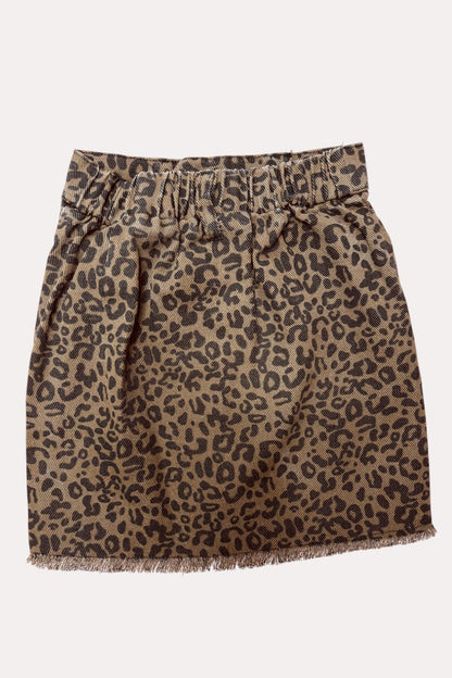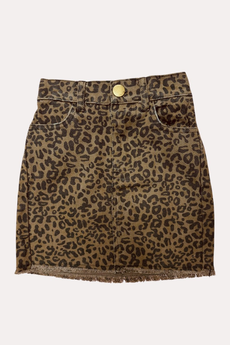 - Skirt feathers in brown leopard print with pockets.