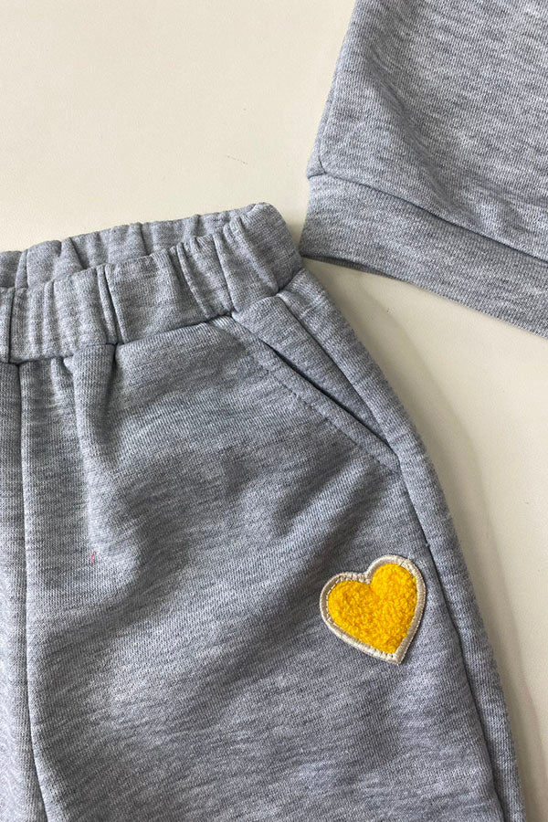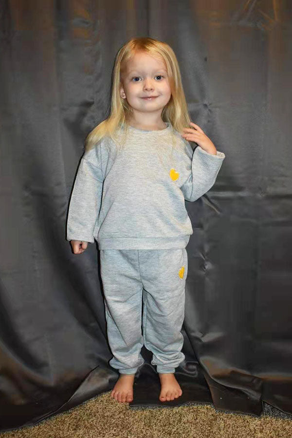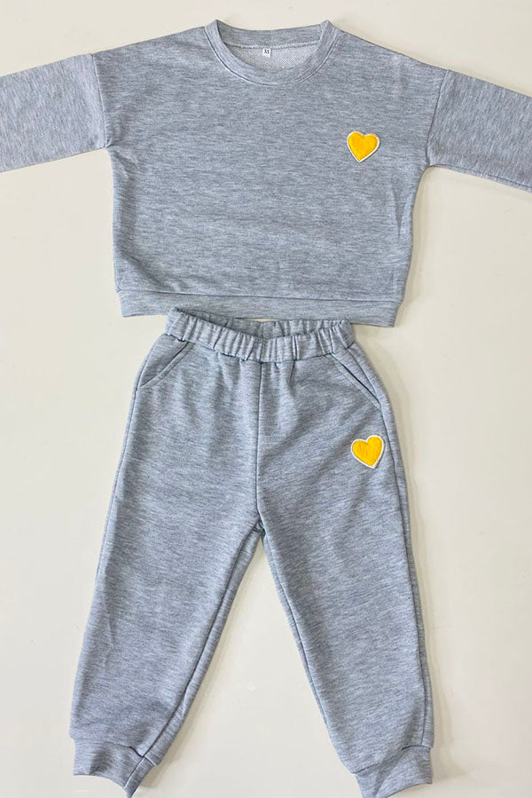 The top features with pullover sweatershirt in long sleeves with small heart embroidery.