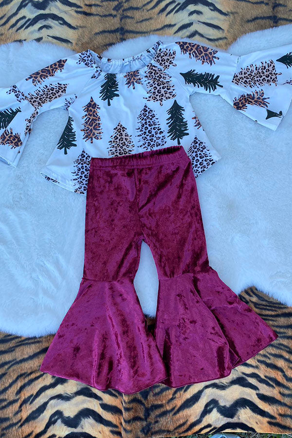 - The top features with green & leopard tree prints on white background with bell long sleeves.