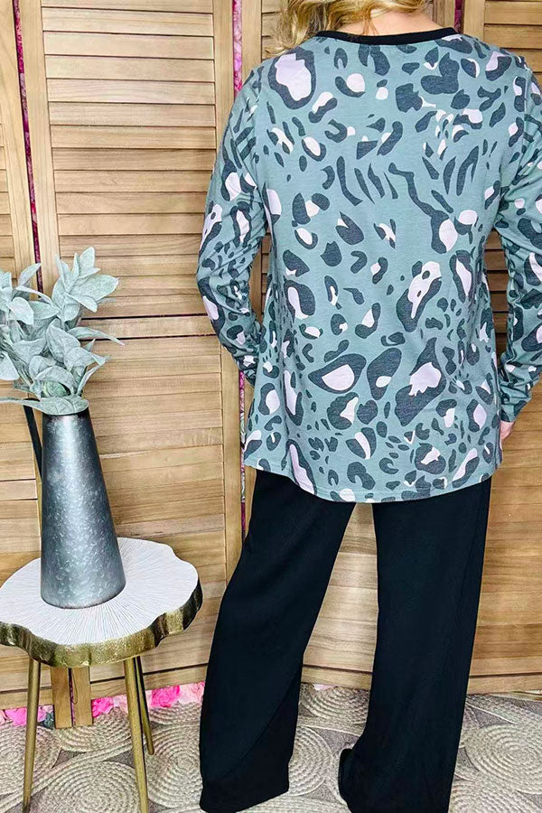 Top features with multi color floral embroidery on leopard printed with black neckline & long sleeves.