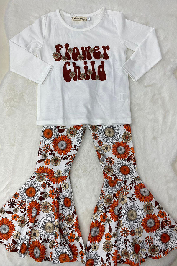 Top features "FLOWER CHILD" wording w/flower prints on white background & long sleeve cut.