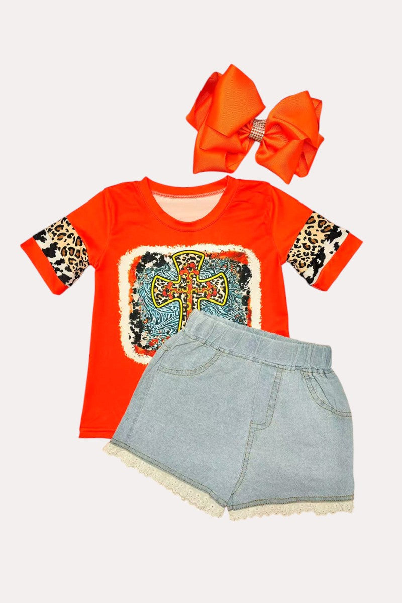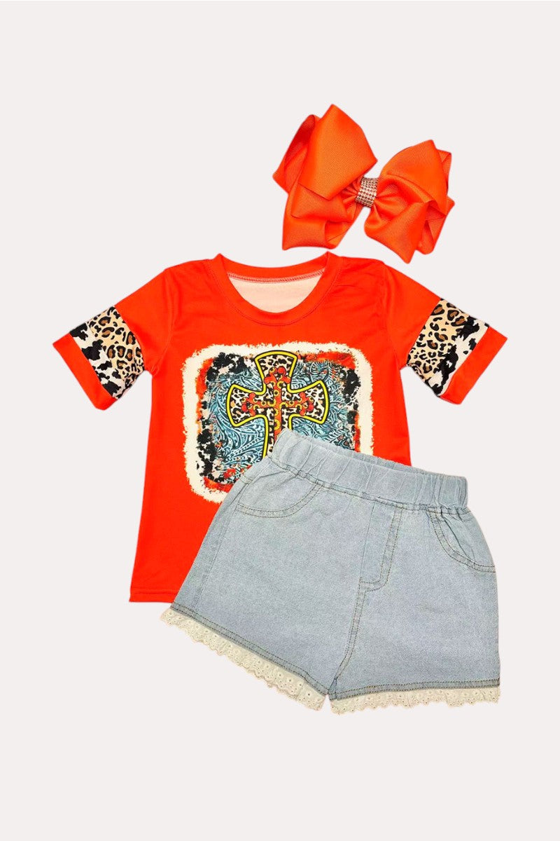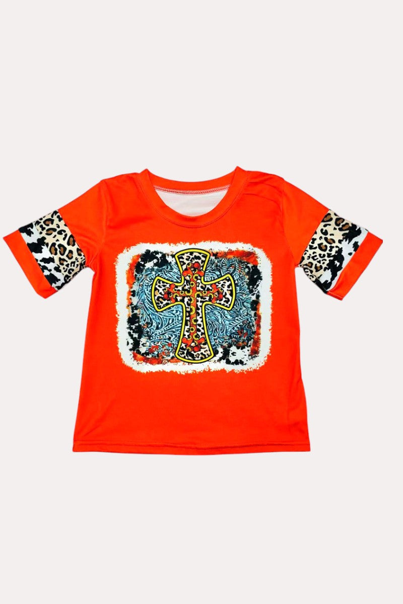 Girls clothing wholesale paisley & crossed printed red short sleeve top D0913-15