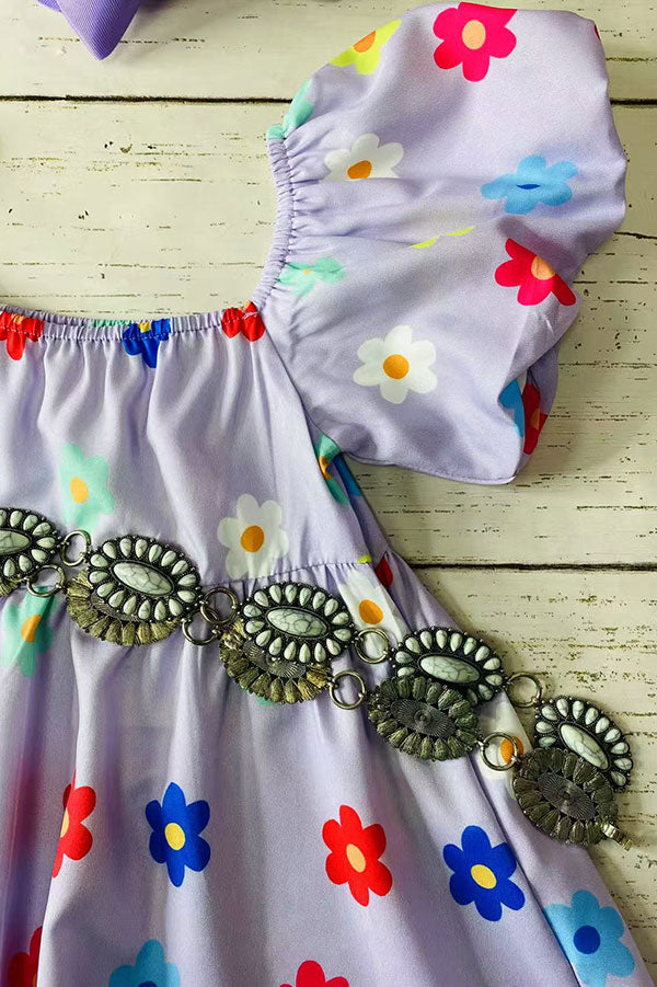 Girls dress wholesale Purple floral print puff short sleeve children's clothing store X03016