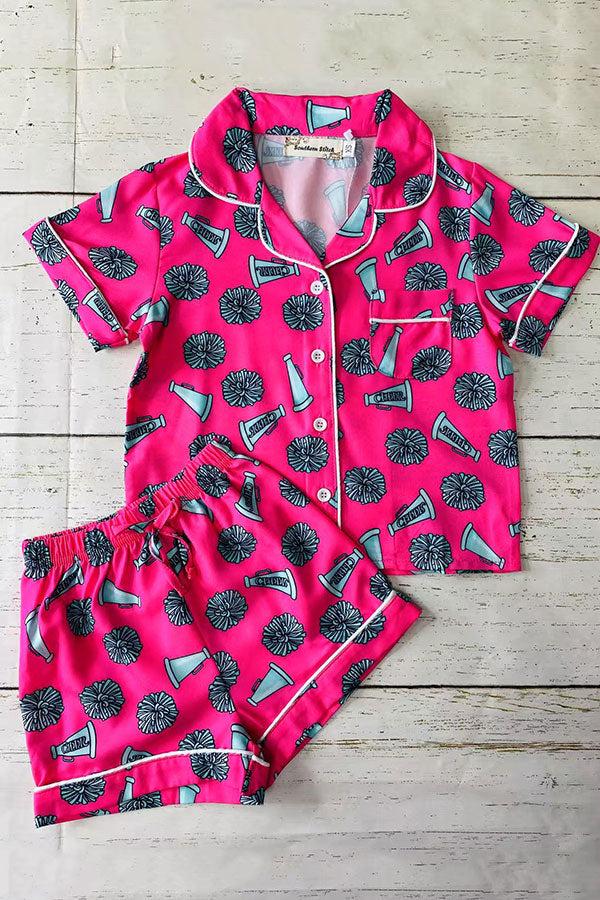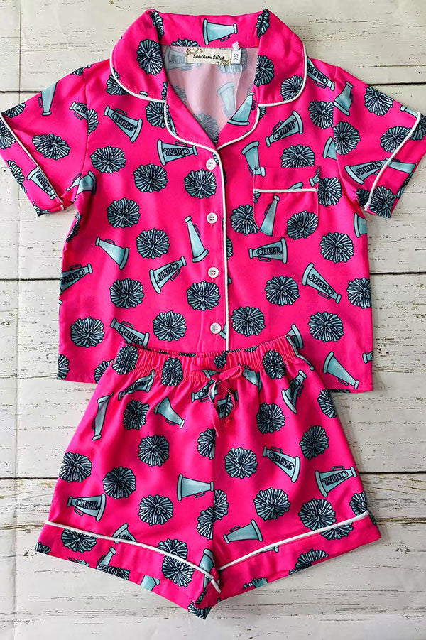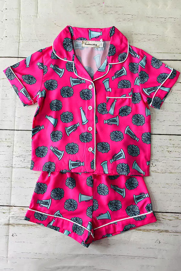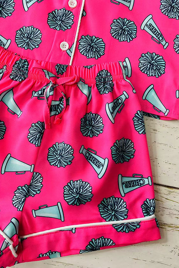 Girls pajamas sets suppliers Cheer prints fuchsia top & shorts 2pc kids sets XCH04027