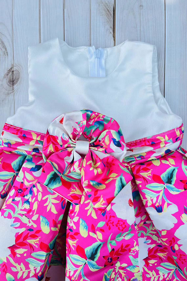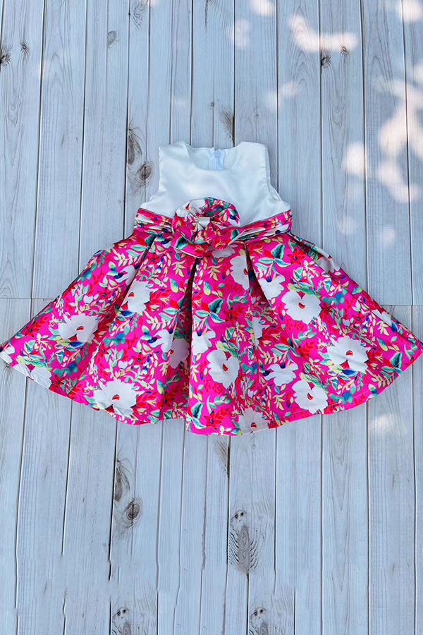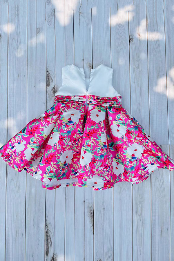 Girls wedding dress wholesale White & Floral princess dress with zipper DLH2876