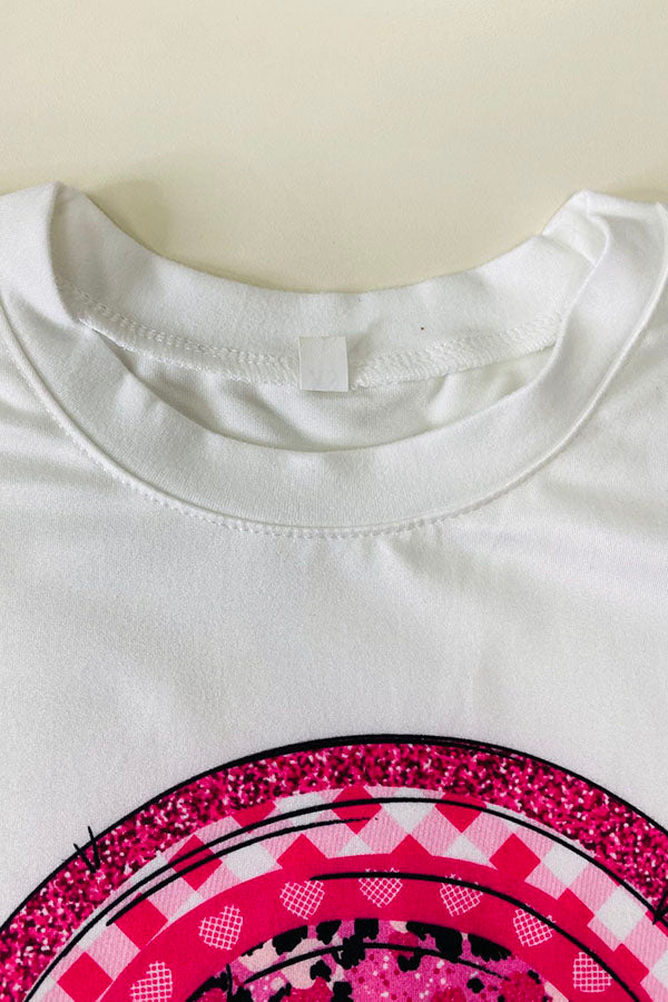 The top features with "God is Love" & heart & rainbow prints on white background with short sleeves.