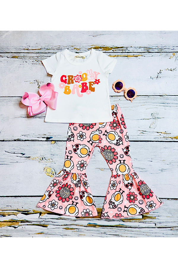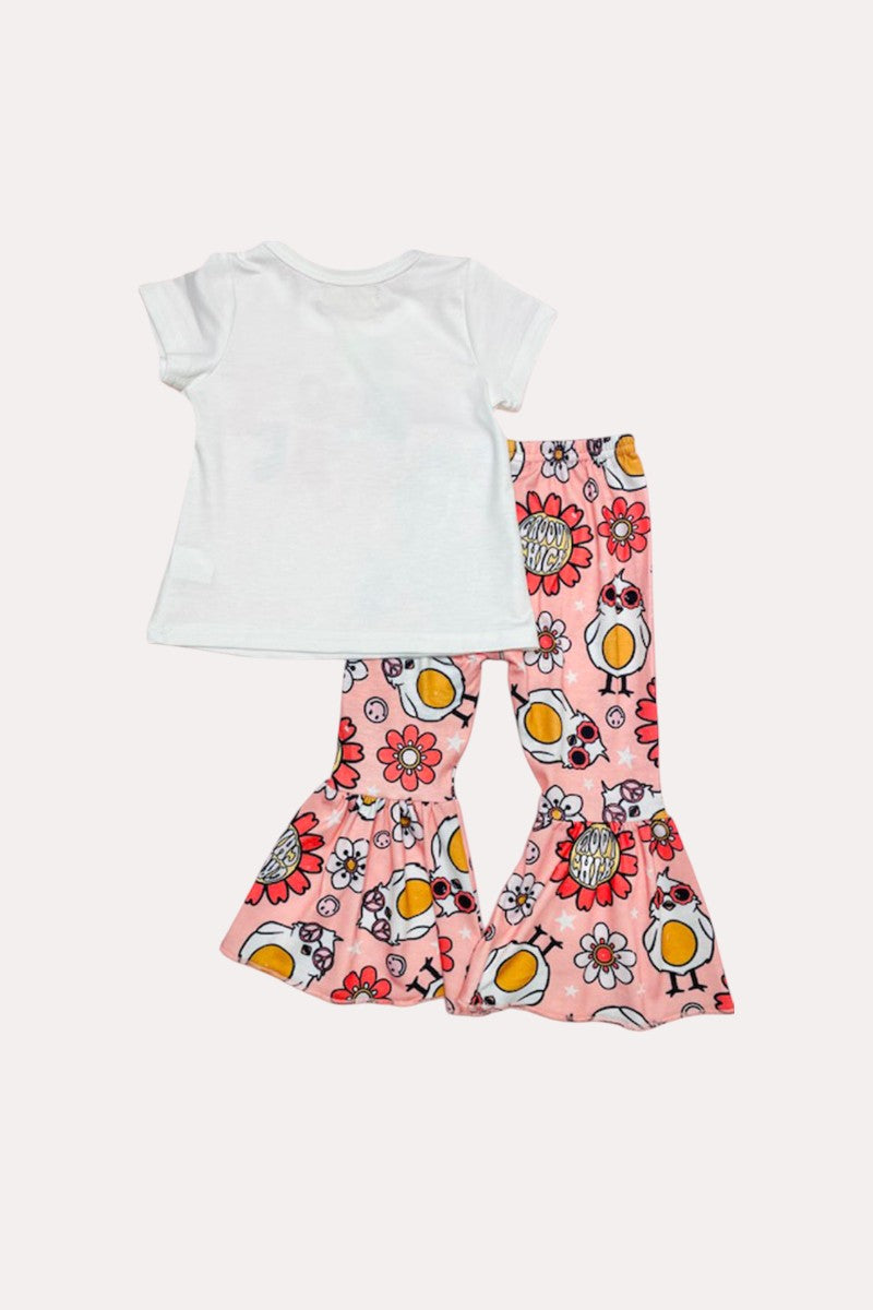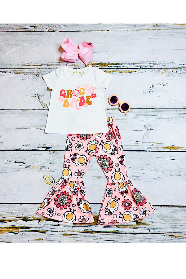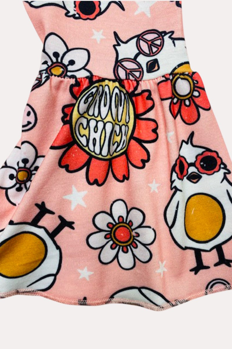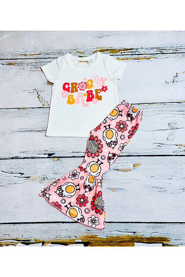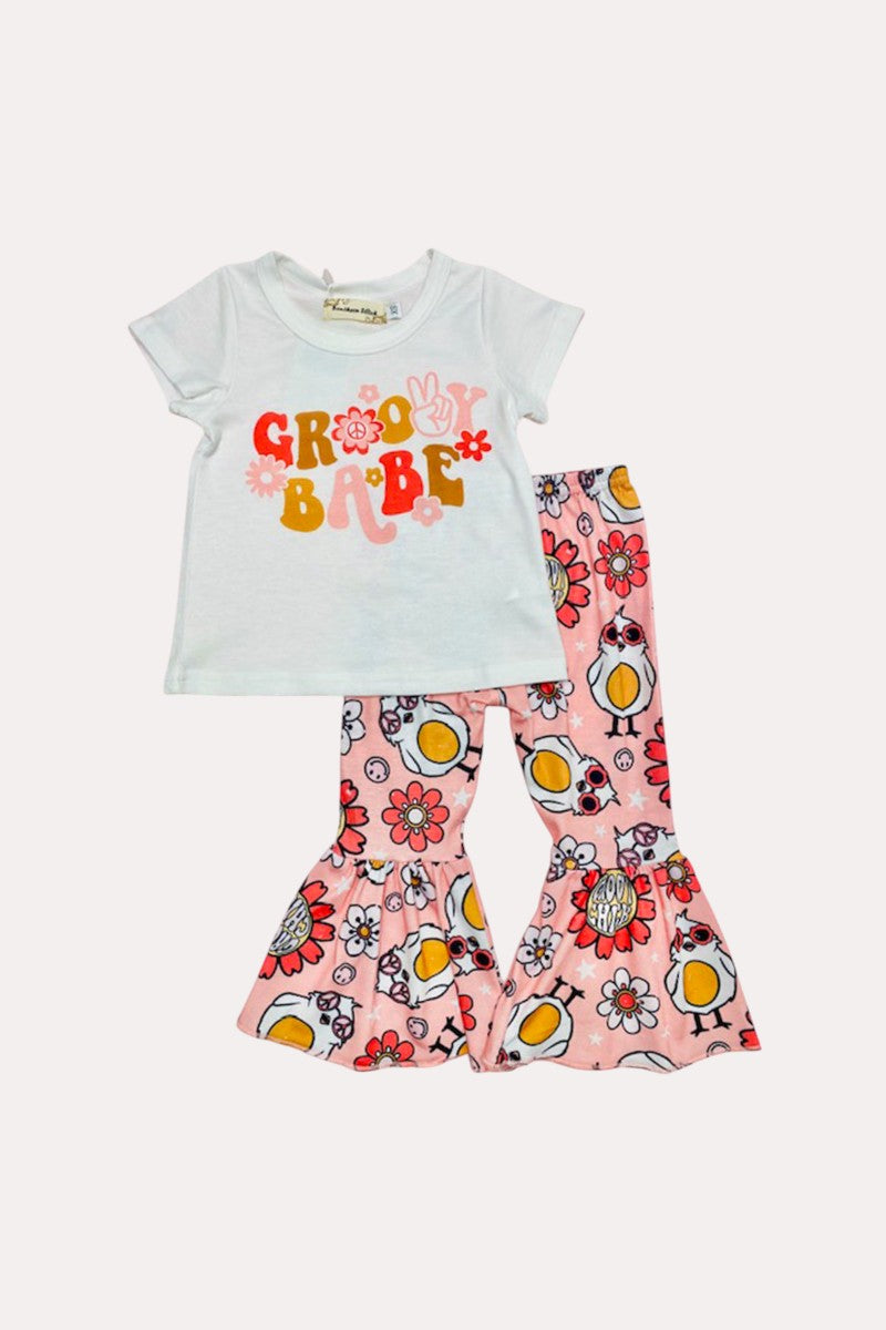 - Bottoms feature "GROOVY CHICK" wording w/chicks, flowers, stars, & smiley faces on pink background.