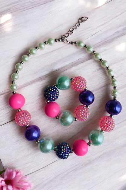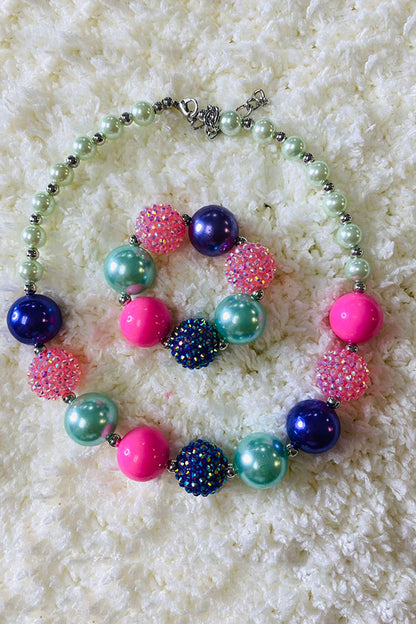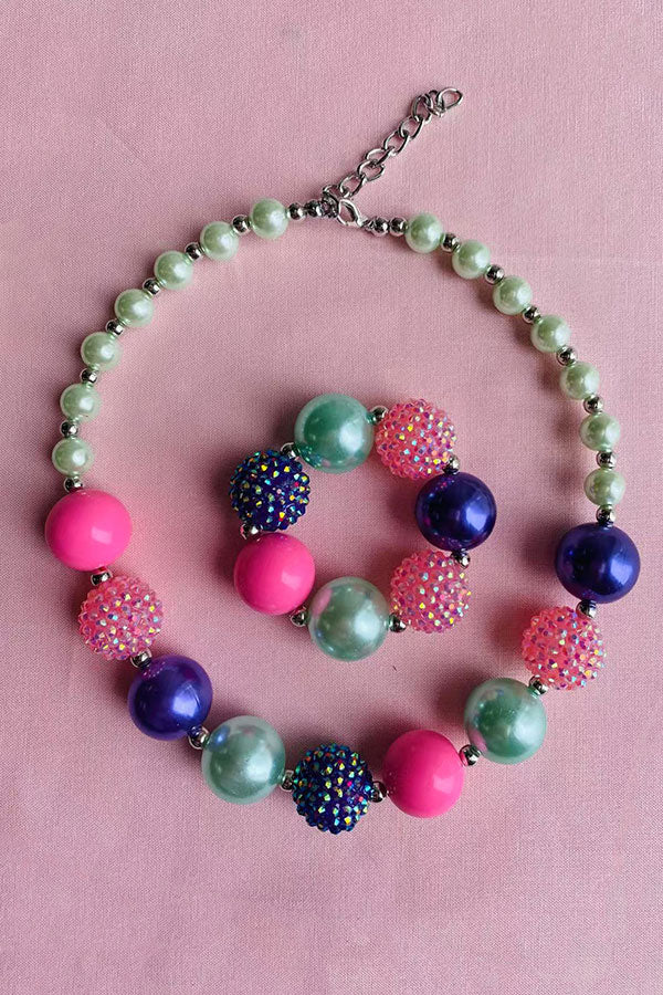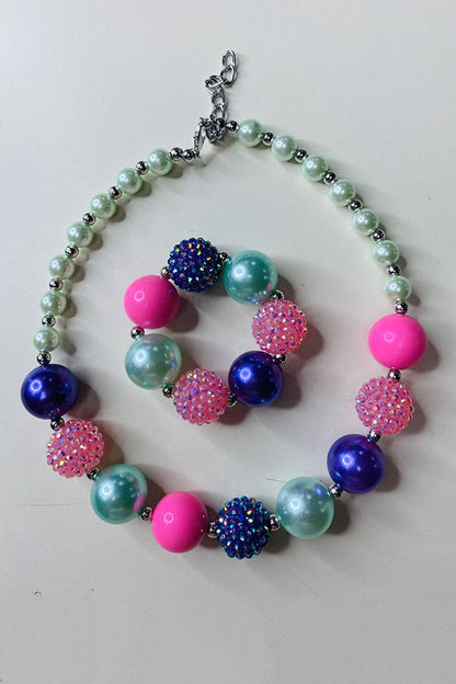 240307 Blue & Pink bubble girls necklace & bracelet sets