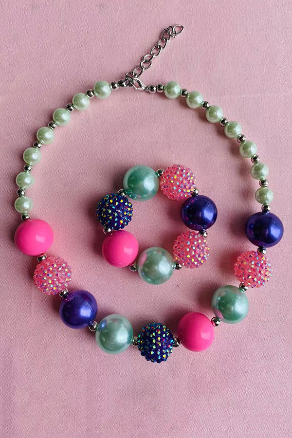 Kids boutique necklace suppliers blue & Pink bubble girls necklace & bracelet sets 240307
