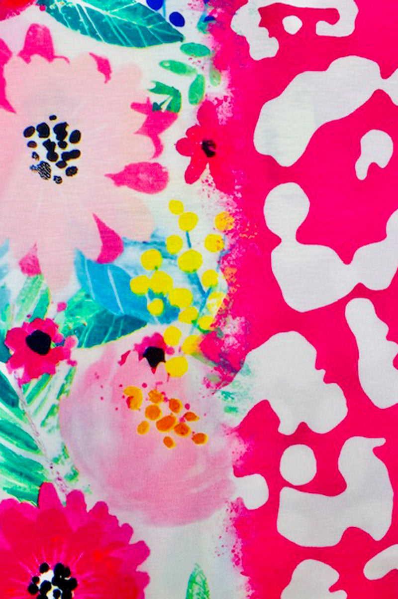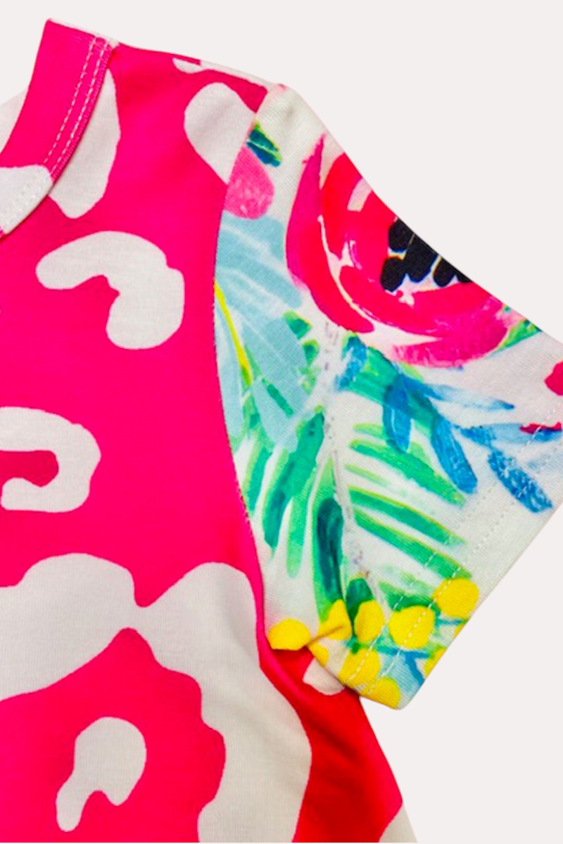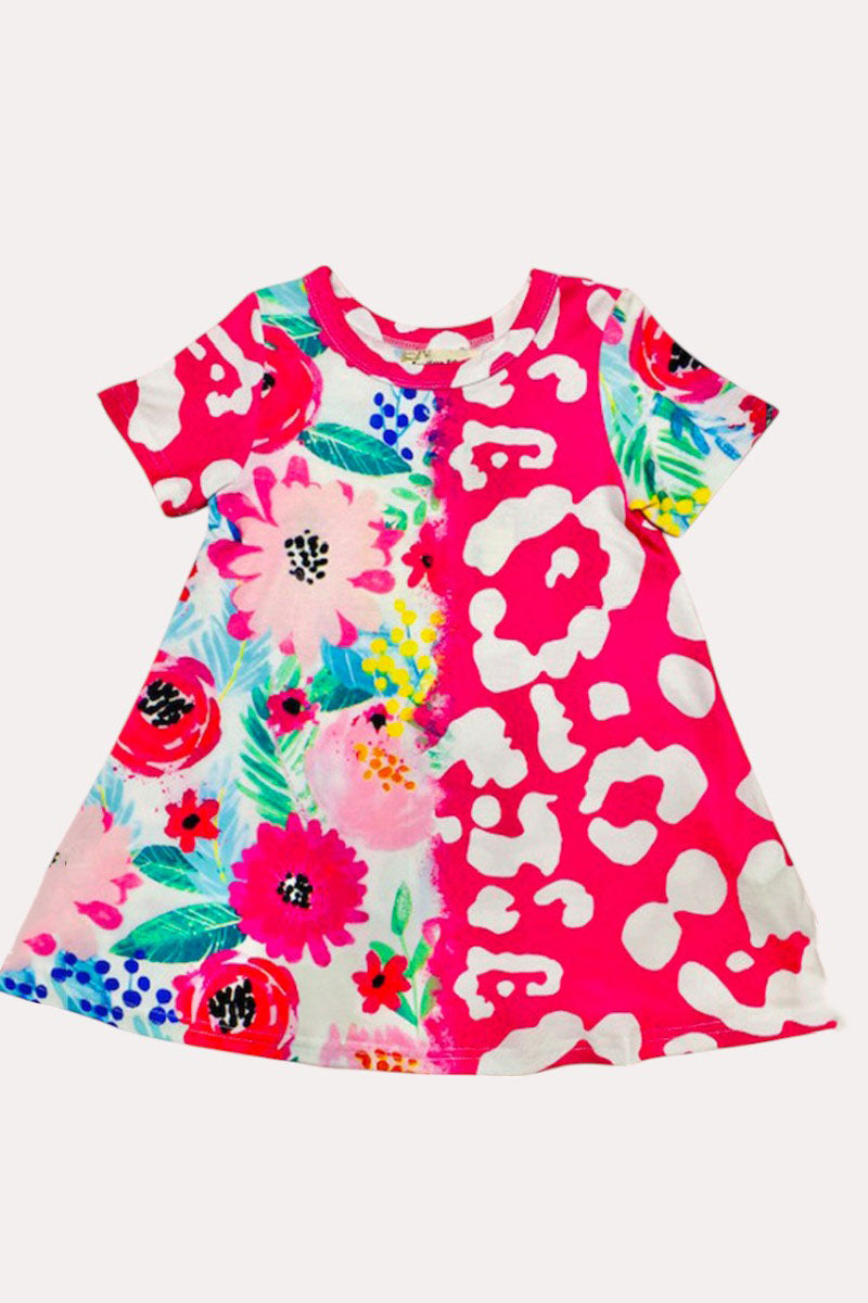 - Dress features half floral & leopard prints with short sleeves style.
