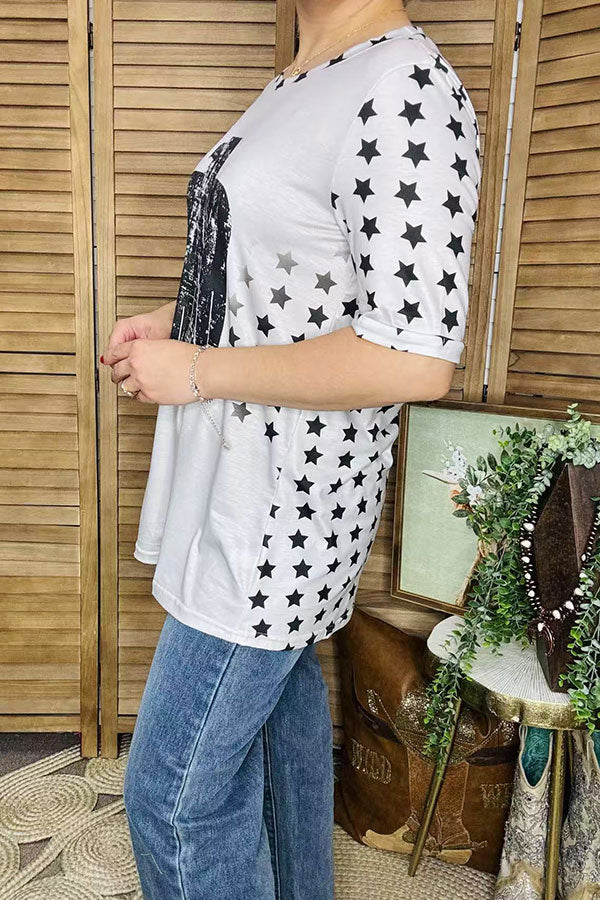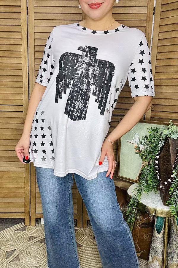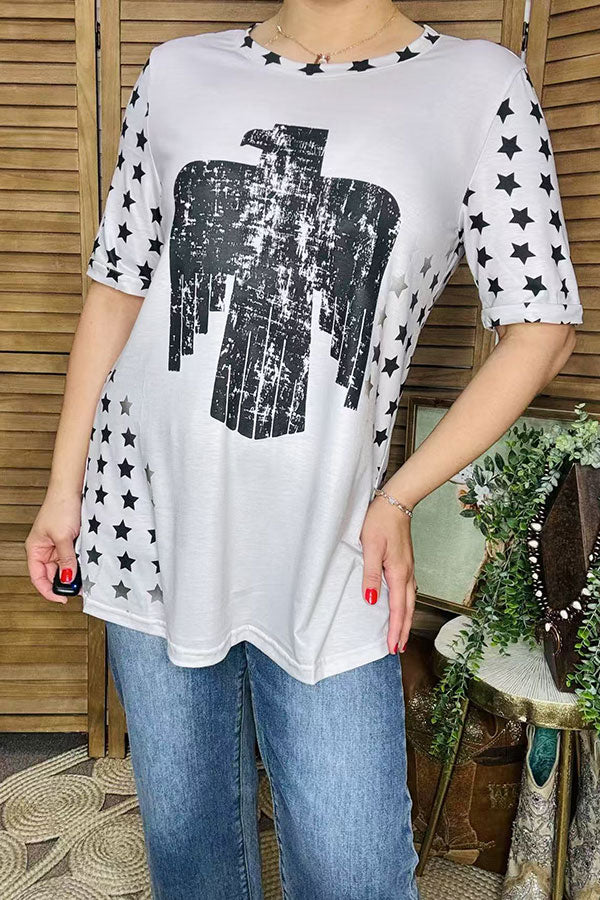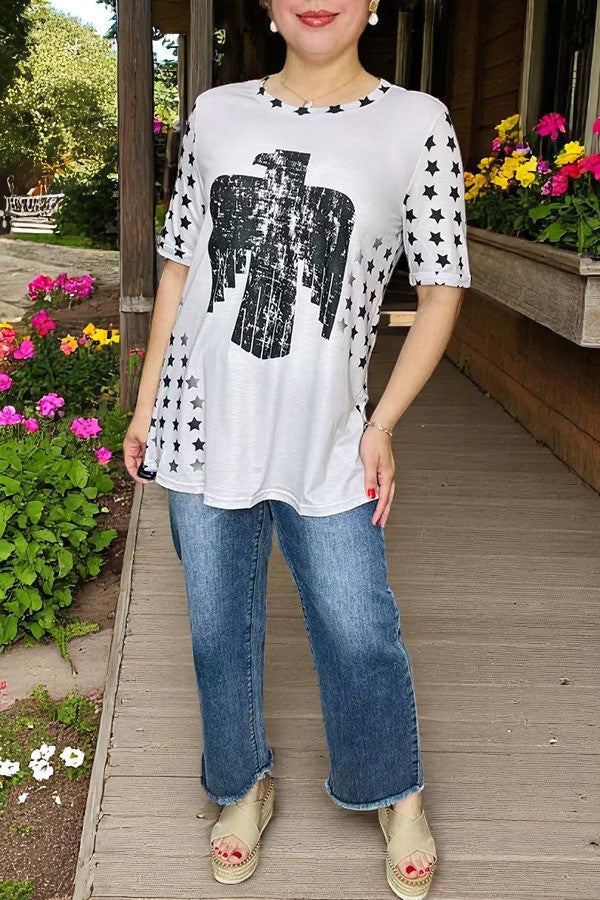 Ladies t-shirt wholesale Eagle & Stars printed short sleeve women top DLH14782