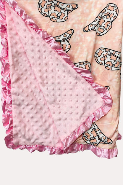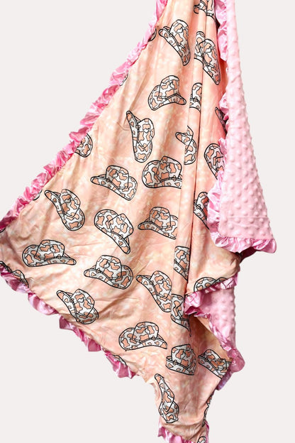 D2657 Leopard & Hat print w/pink minky baby blanket