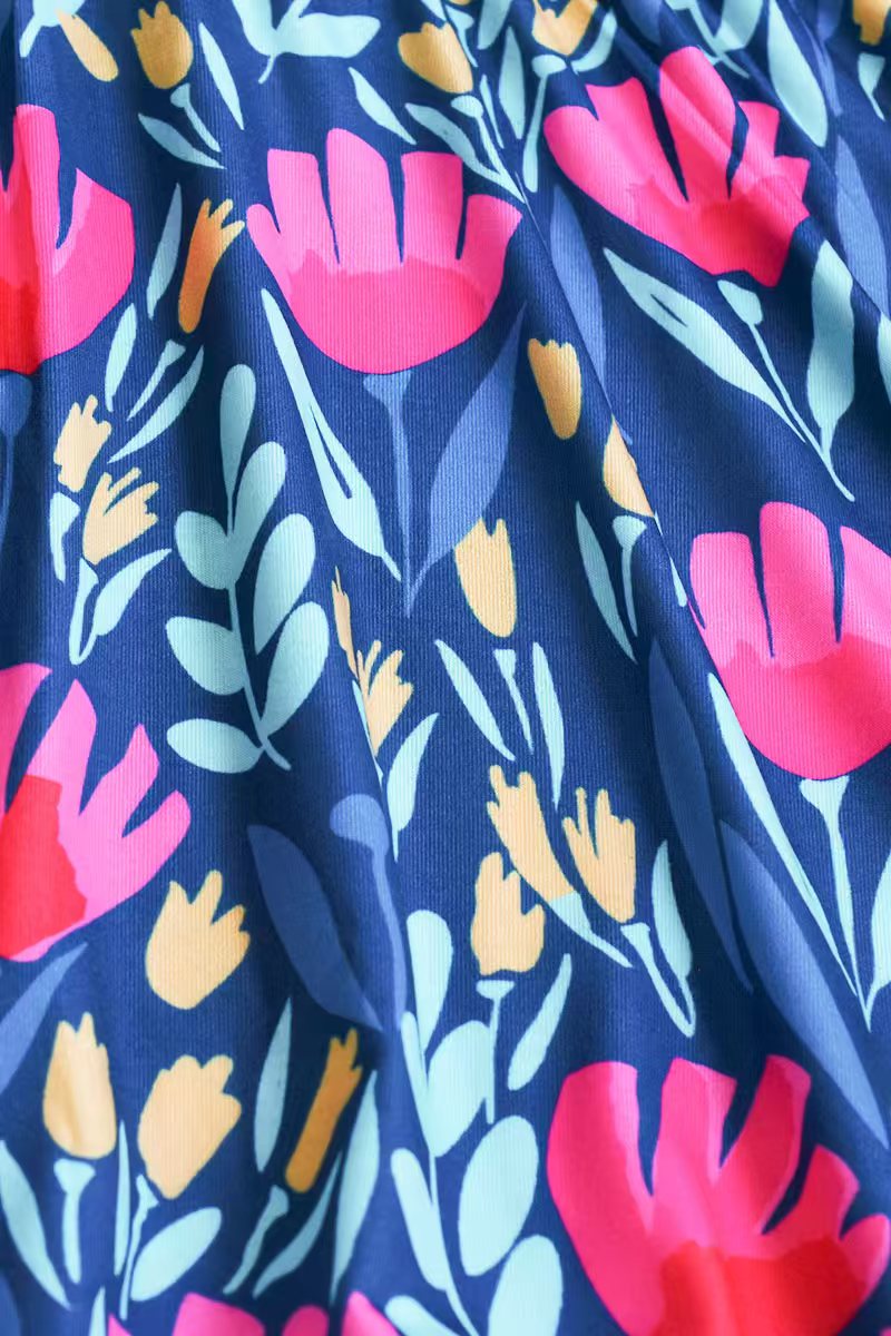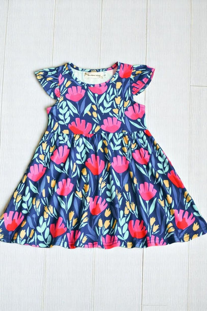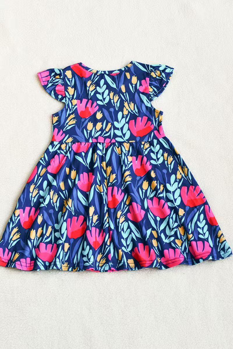 Dresses features with multi color floral prints with ruffle short sleeves in Mommy and me style.
