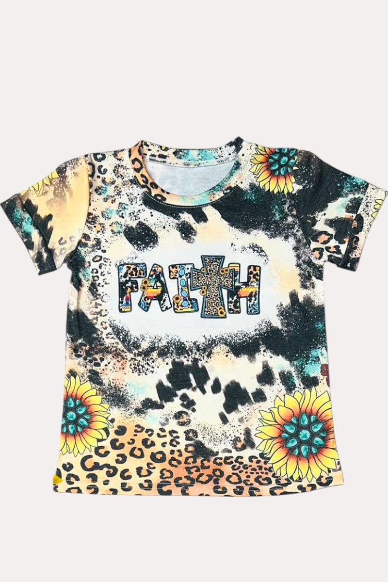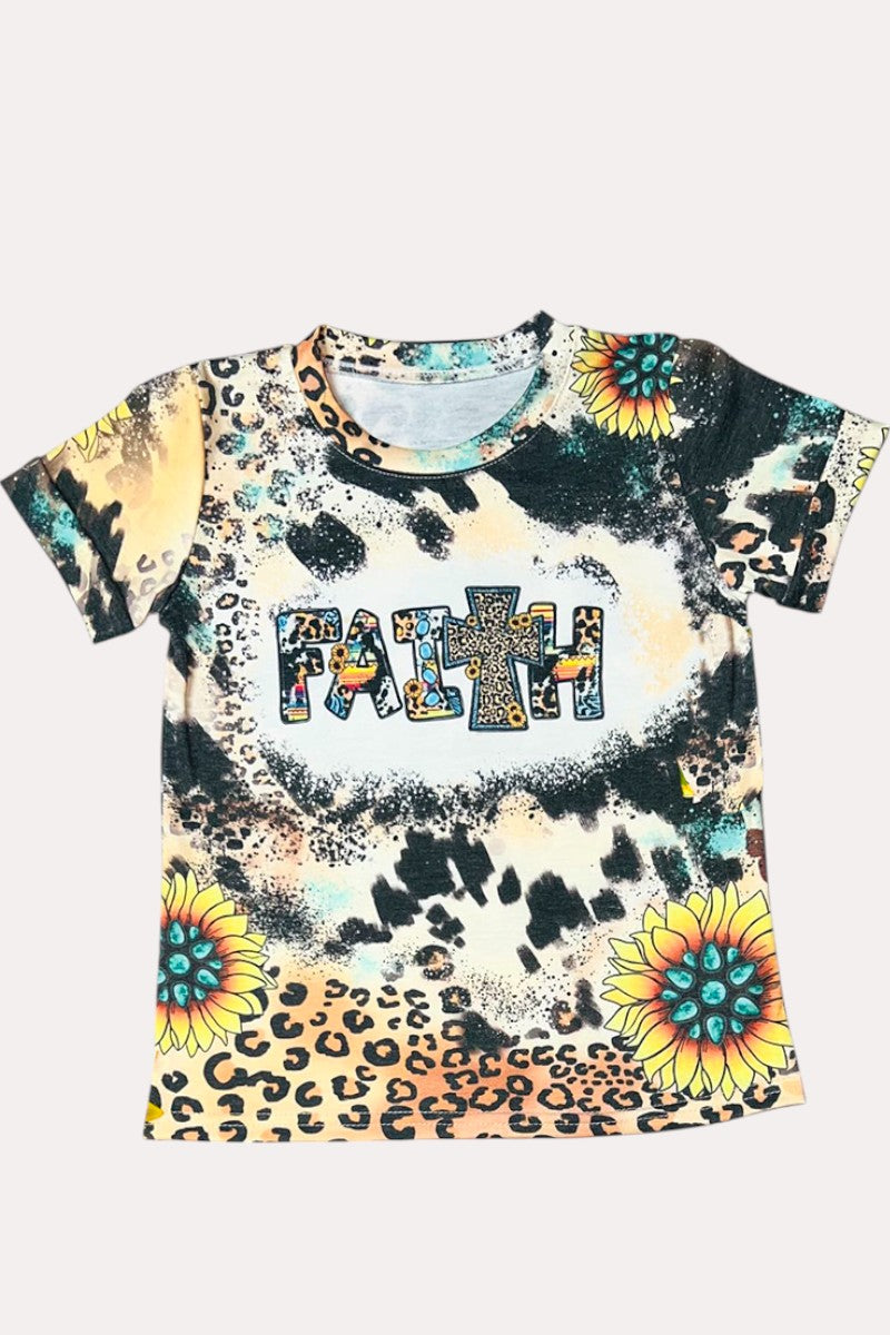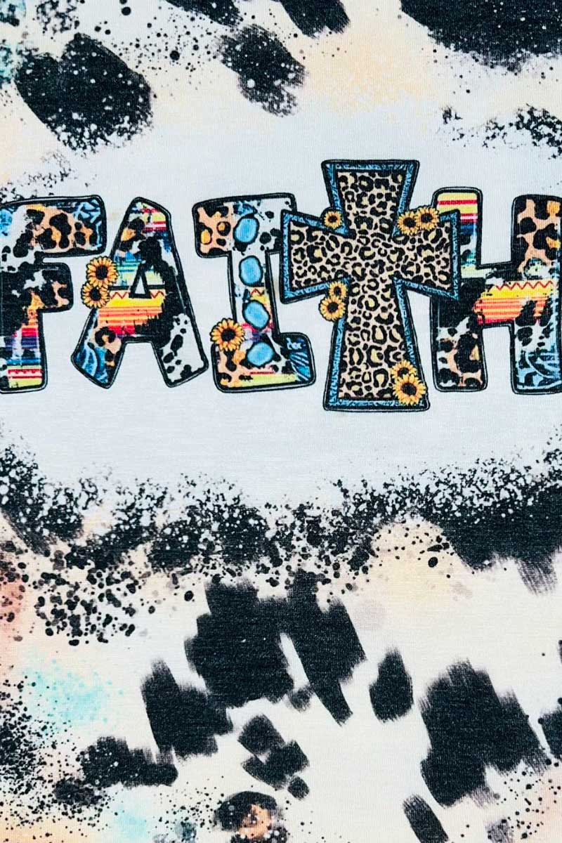 Top features "FAITH" wording with multiple prints such as leopard, serape, jewels, & sunflowers with a washed leopard spots print background.