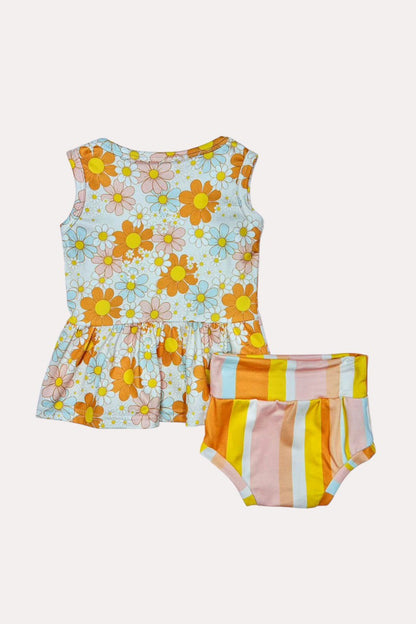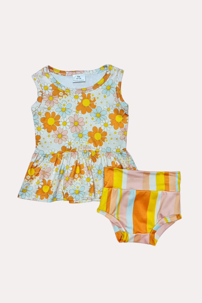 - Bloomer features peach tones stripped print.