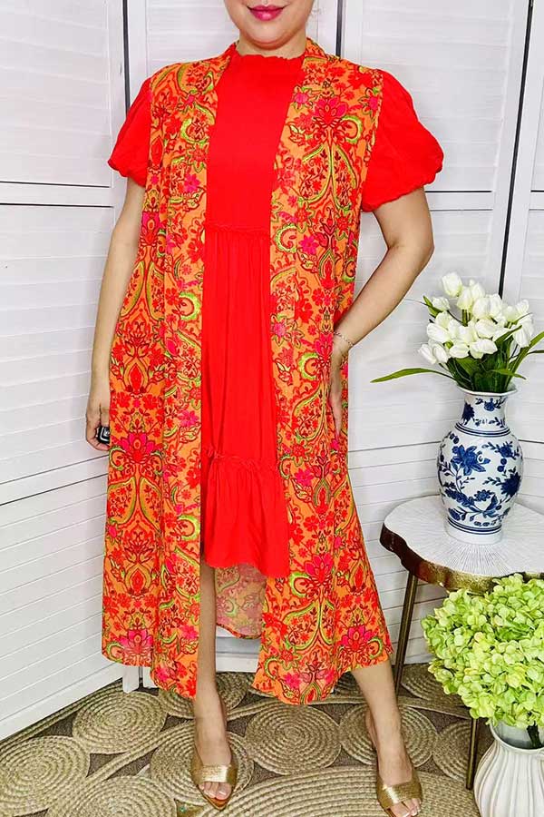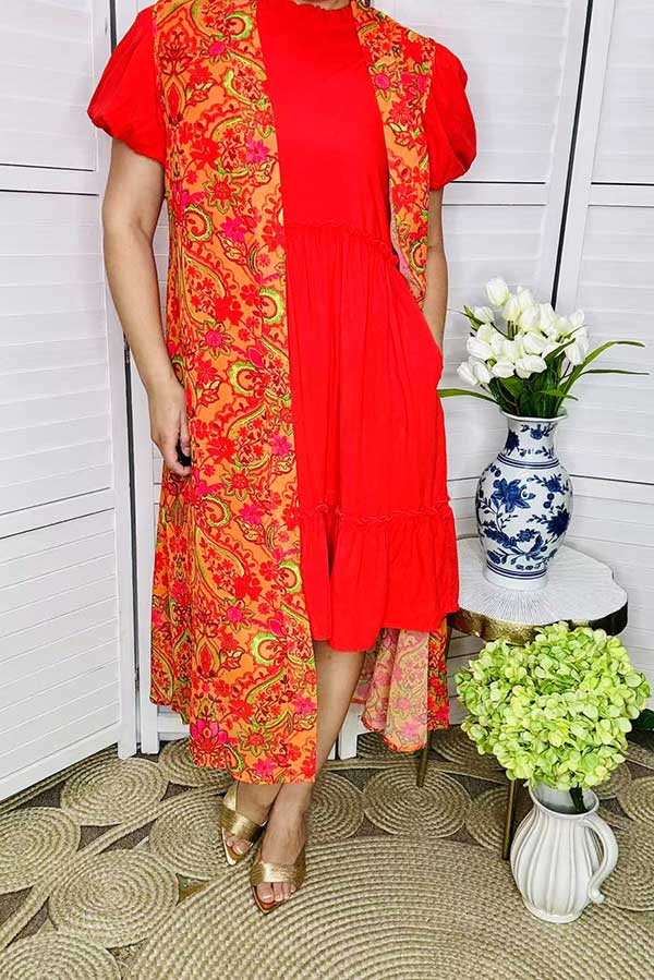 Top features with orange & pink floral printed with long style cuts.
