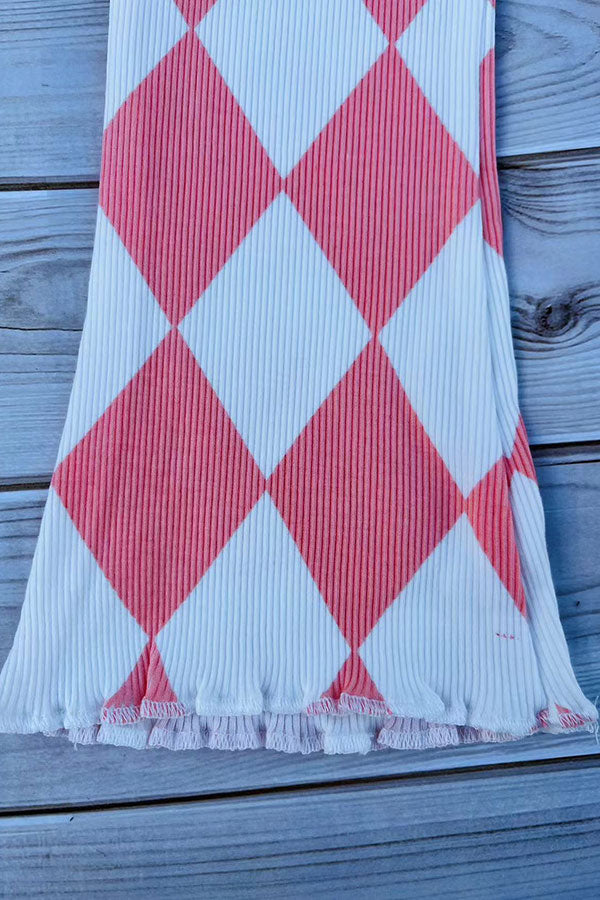 Ribbed knitted fabric pink checkered flare leg girls pant 250947M