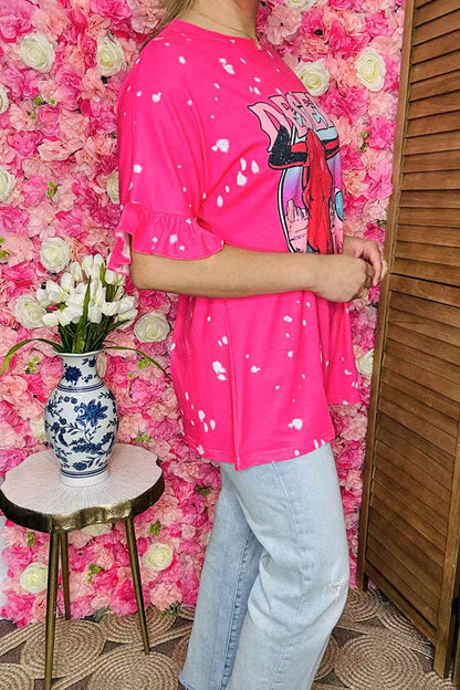 Shop western DESERT PINK bull skull printed short sleeve women top XCH12979