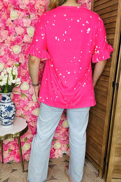 Top features in DESERT & bull printed on tie die fuchsia background w/short sleeves.