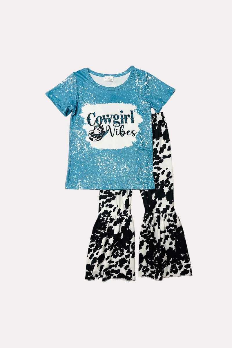 - Top features " COWGIRL VIBES" wording on a bleached turquoise background.