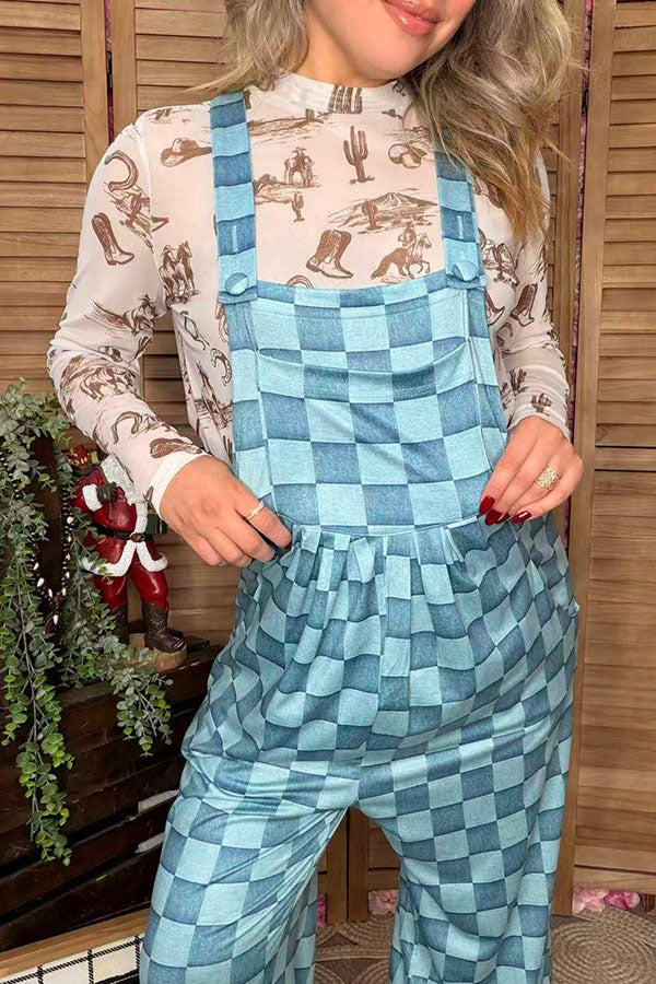 Top features with western patterns printed on cream background with sheer/mesh fabric & long sleeves.