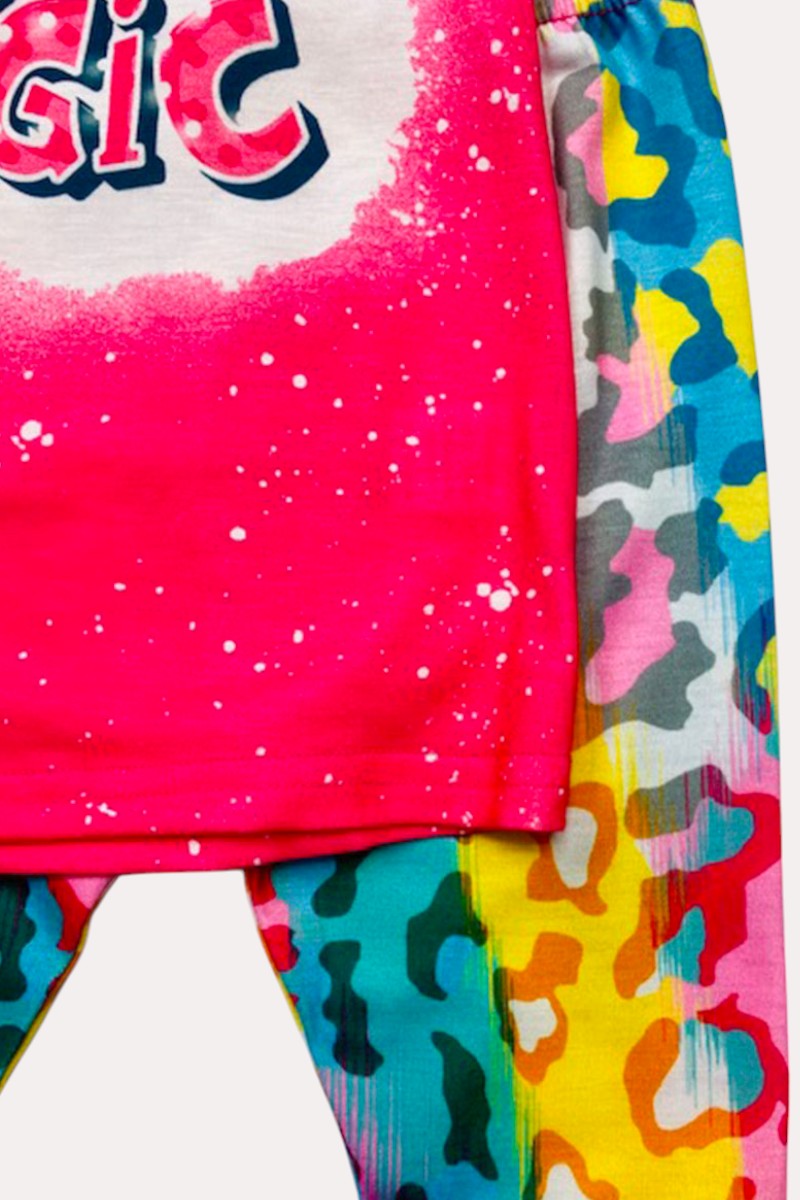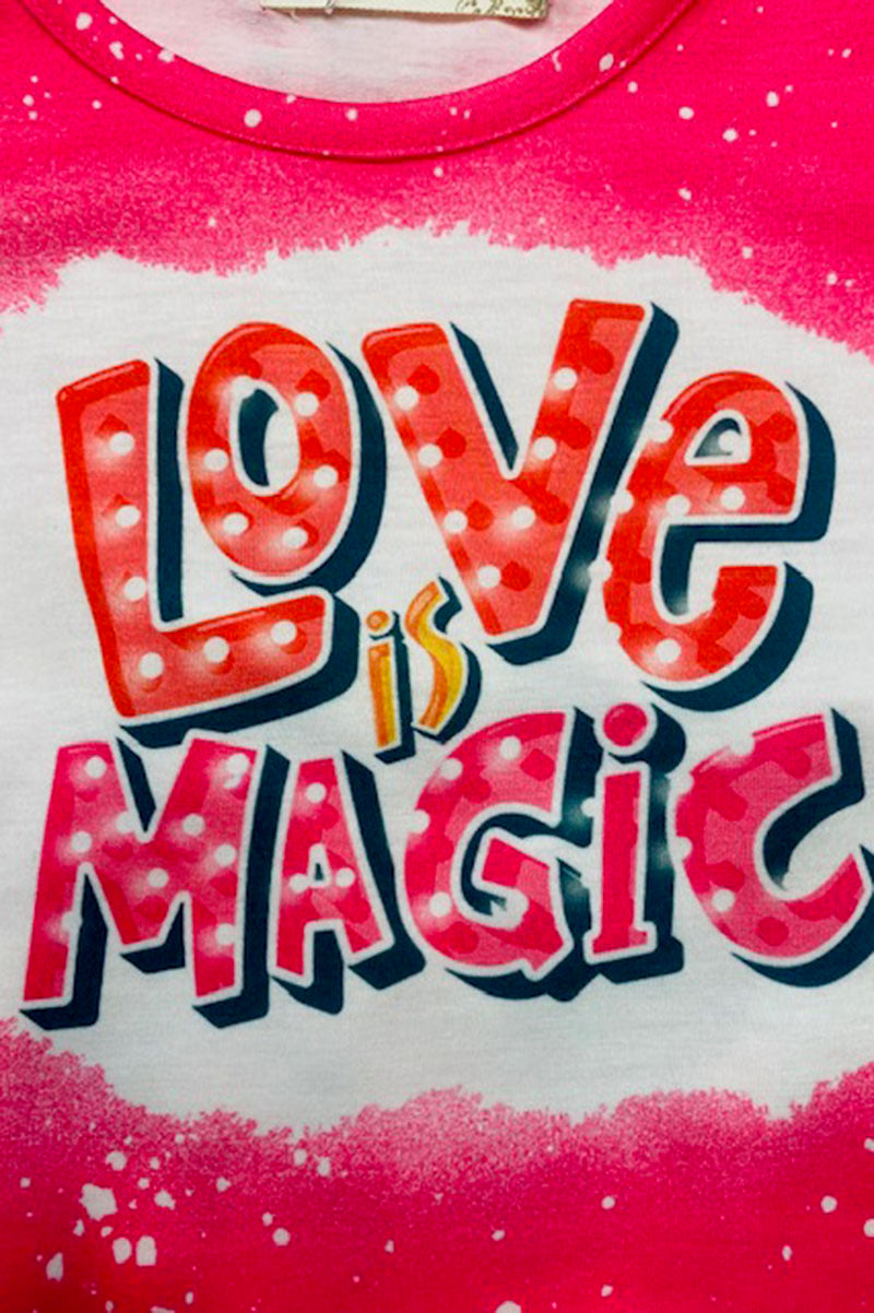 The top features "LOVE IS MAGIC" wording logo on a bleached hot pink background.