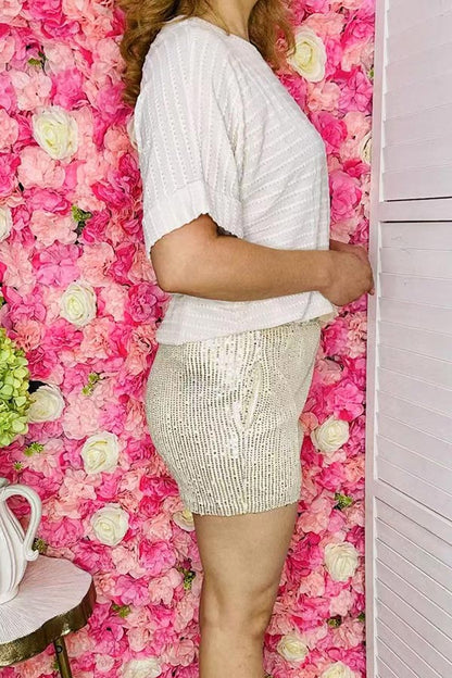 Shorts features solid color sequin with lining, elastic waist band & pockets.