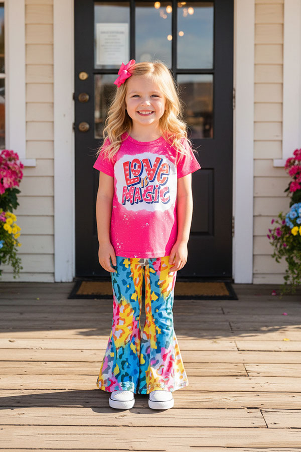 The top features "LOVE IS MAGIC" wording logo on a bleached hot pink background.
