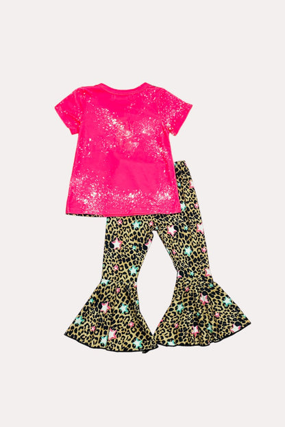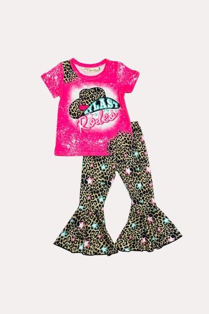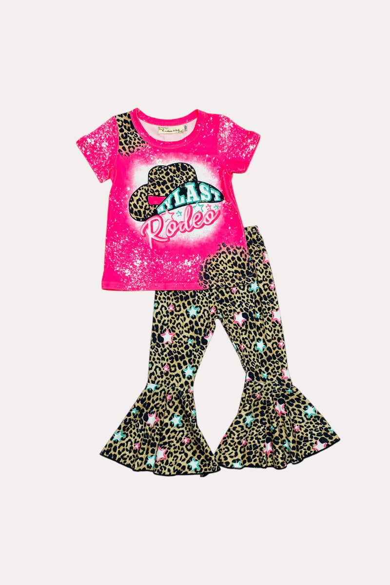 - Top features wording MY LAST REDEO & leopard hats printed on pink background with short sleeves.